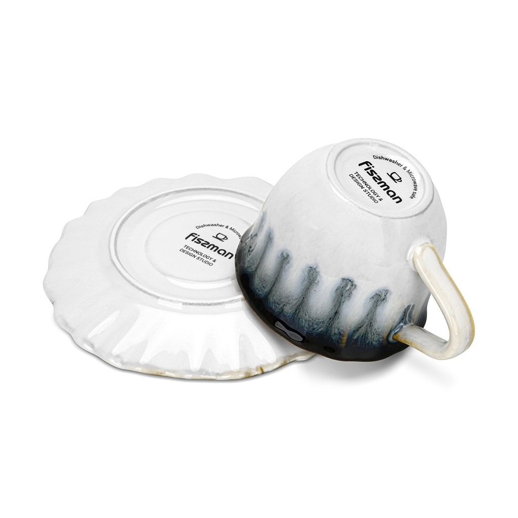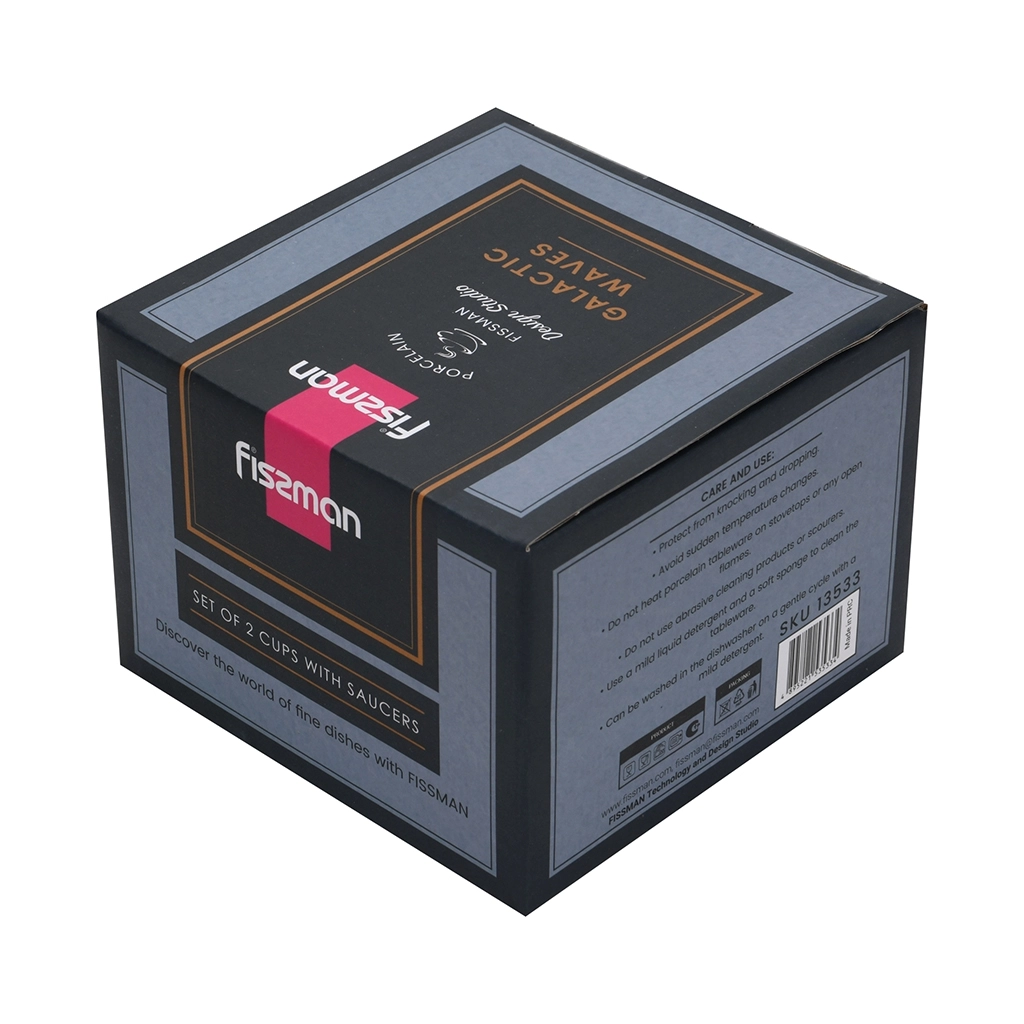 Идеально подойдут для: утреннего кофе, семейного чаепития, гостевых приёмов, дачи, офиса. Отлично смотрятся на праздничном столе, во время романтического завтрака или вечернего десерта. Легко сочетаются с другой посудой FISSMAN, особенно из одноимённой коллекции, создавая целостный и гармоничный образ. https://fissman.ru/catalog/aksessuary-chay-kofe/chashki/chashki-100-ml/farforovye-chashki-s-blyudtsami-100-ml-4-pr-galactic-waves/