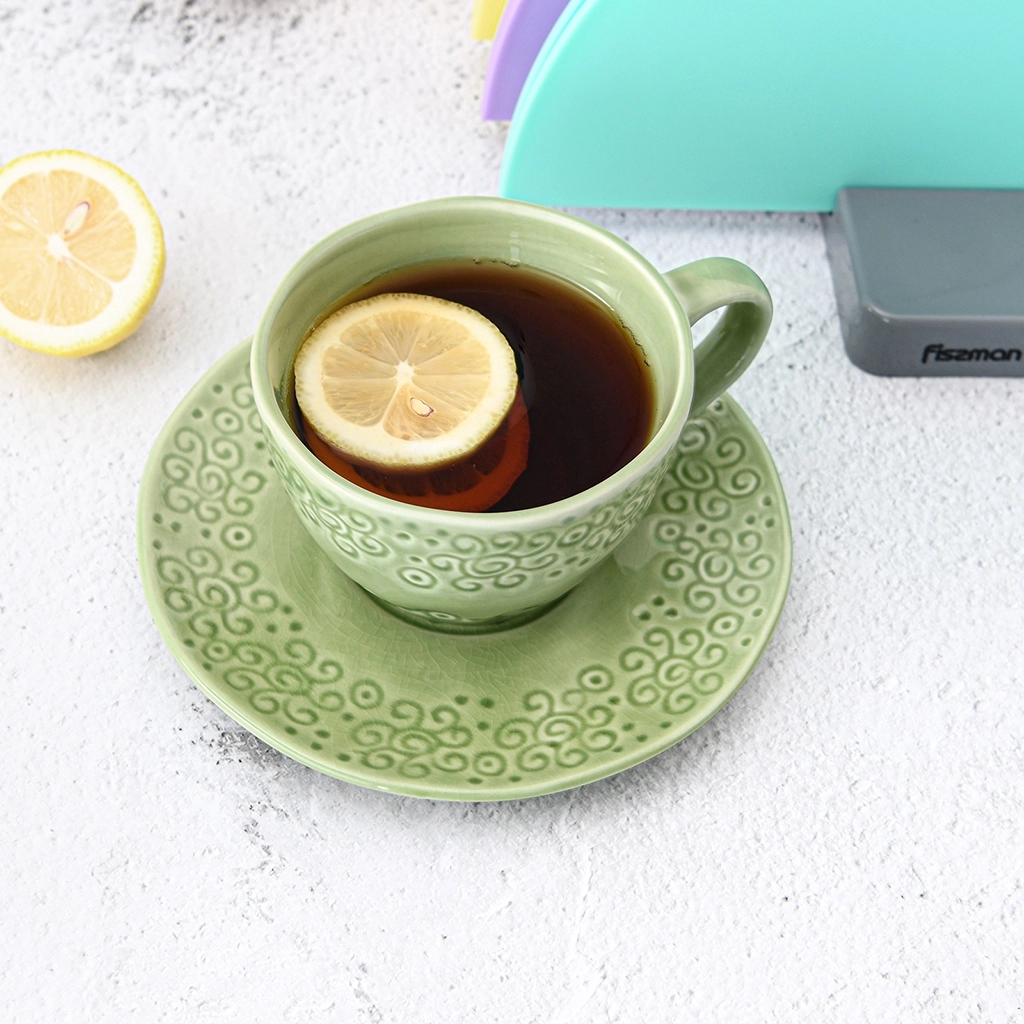 Fissman представляет новую серию керамической посуды с эффектом кракелюра. Чайные пары, масленки, сахарницы, тарелки и пиалы в трендовых цветах украсят ваш дом и станут приятным дополнением праздника. Такая https://fissman.ru/catalog/aksessuary-chay-kofe/chashki/chashki-260-ml/chaynaya-para-keramicheskaya-260-ml-lykke/ посуда подходит и для повседневного использования. Благодаря глазурованию она довольно долговечна и хорошо удерживает тепло. Посуду можно использовать в микроволновой печи и мыть в посудомоечной машине.