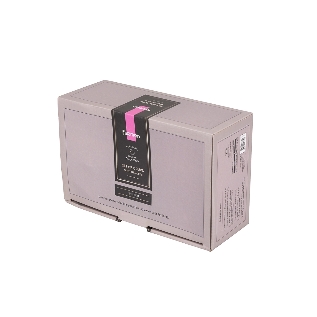 FISSMAN предлагает стильный и функциональный набор из двух чашек Coffee объёмом 240 мл и блюдец. Изготовленные из высококачественного фарфора, эти изделия прослужат вам долгое время.