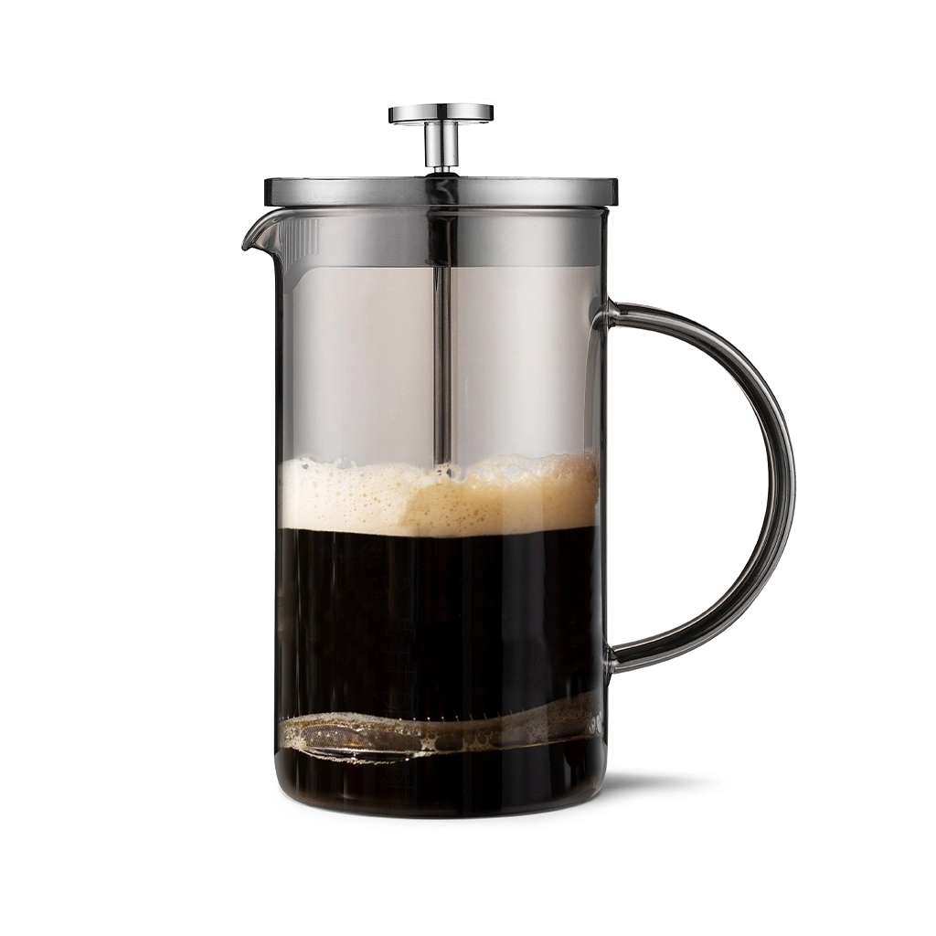 • Кроме того, серый цвет стекла придаёт френч-прессу элегантный и современный вид, что позволяет ему гармонично вписаться в любой интерьер кухни.