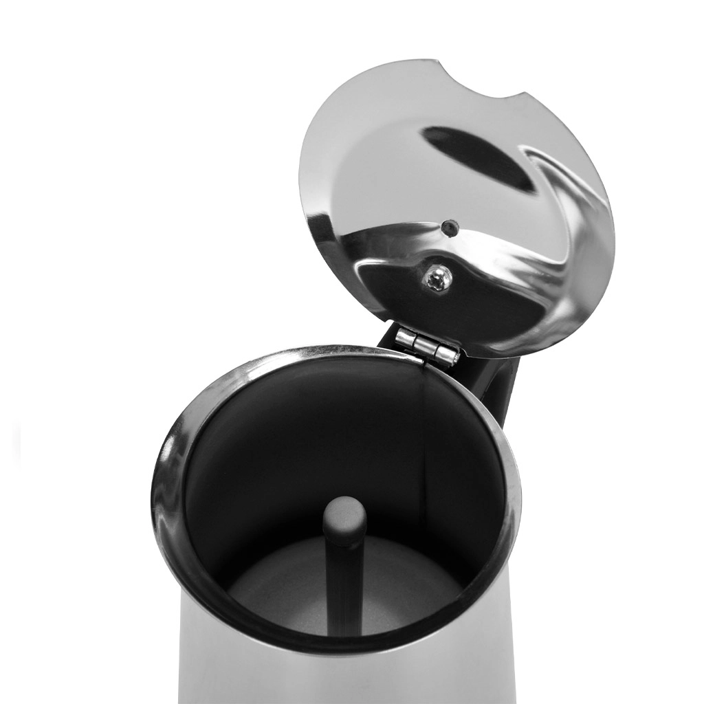 Прочная нержавеющая сталь в основе делает кофеварку надёжной, а её стильный дизайн украсит любую кухню. Эргономичная чёрная ручка из теплостойкого материала комфортна в использовании и не нагревается.