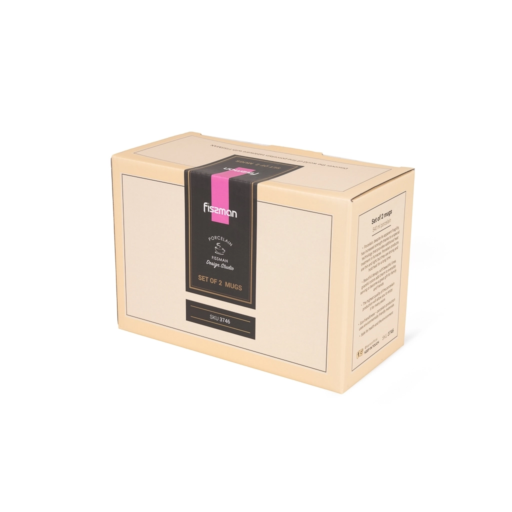 Фарфоровый комплект FISSMAN включает две прекрасные кружки. Каждая кружка имеет объём 540 мл, что делает их подходящими для разнообразных напитков.
