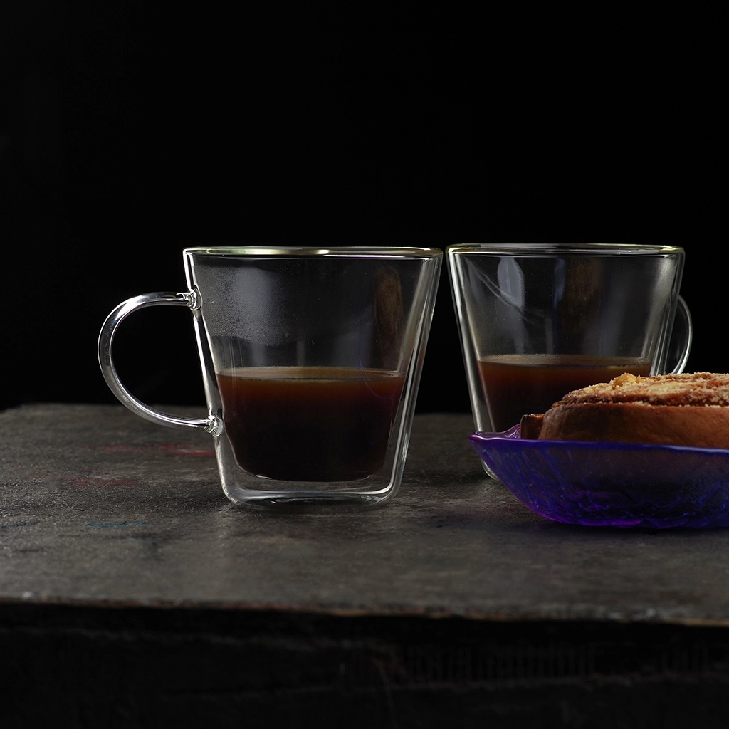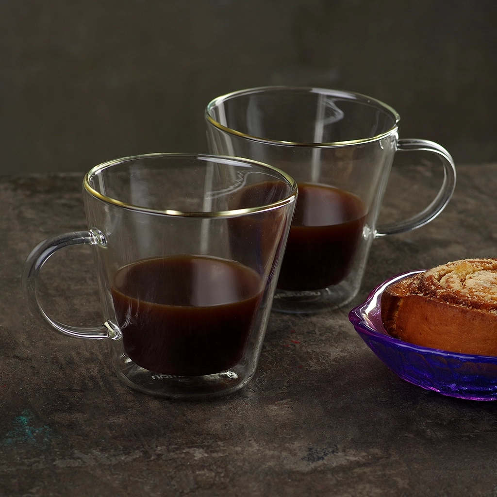 • Набор из 2- х кружек с двойными стенками – изготовлен из высококачественного боросиликатного стекла