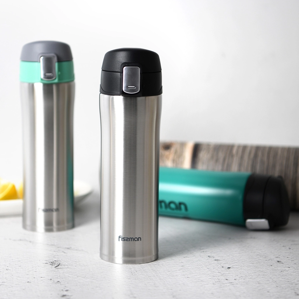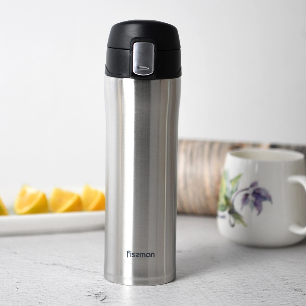 Термокружка чёрного цвета объёмом 450 мл имеет двойные вакуумные стенки и сохраняет температуру напитка до 6 часов. Она идеально подходит для использования в автомобиле и может использоваться для различных напитков - от чая до кофе. Благодаря эргономичной форме и удобной ручке, использование кружки доставляет комфорт. https://fissman.ru/catalog/aksessuary-chay-kofe/termokruzhki/termokruzhki-450-ml/termokruzhka-iz-nerzhaveyushchey-stali-450-ml-art-9882/