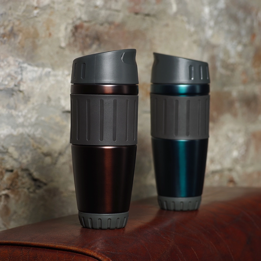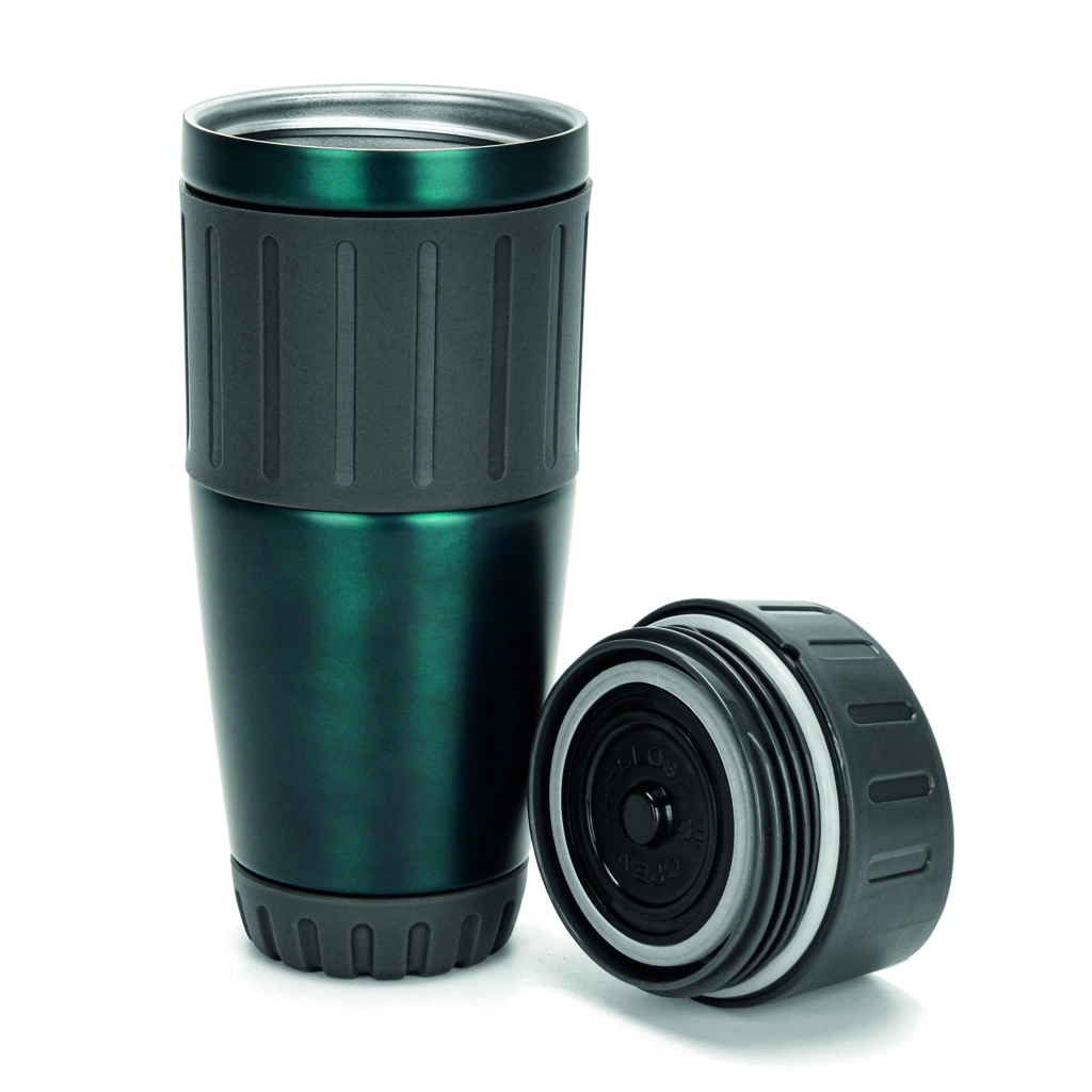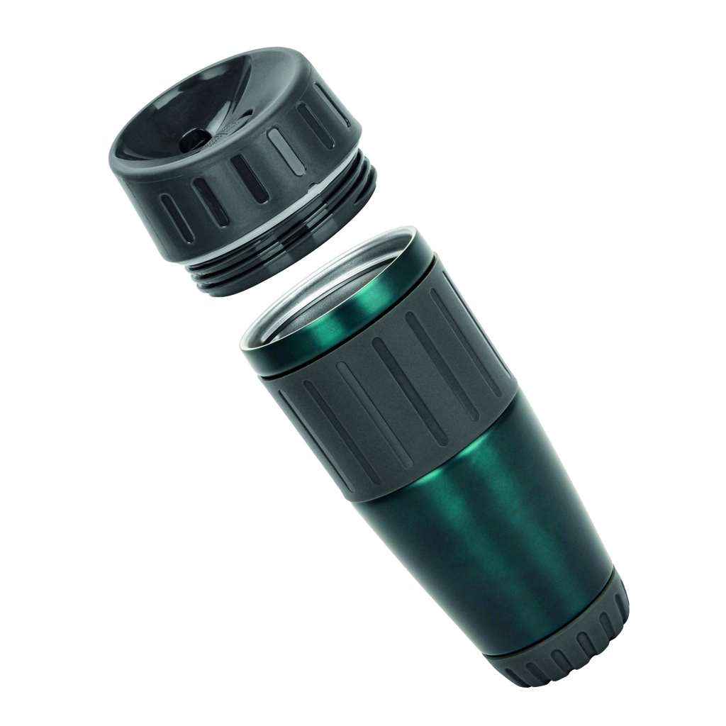 Специальная кнопка на крышке позволяет легко открывать и закрывать кружку одной рукой. Эта функция особенно полезна при использовании кружки в автомобиле. В комплекте с кружкой идет стильная подарочная коробка.
