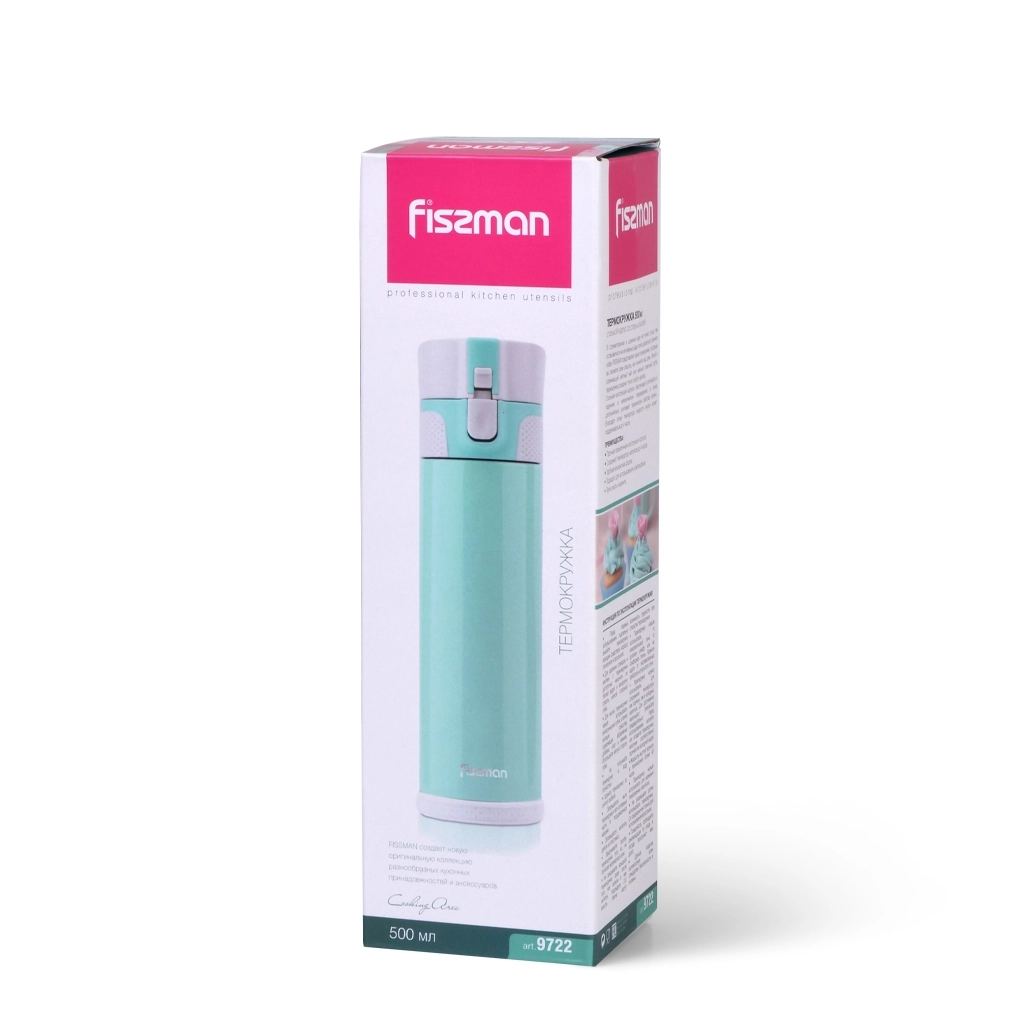 Термокружка из нержавеющей стали марки 304 зелёного цвета с вакуумной изоляцией для горячих и холодных напитков. Благодаря двойным стенкам и объему 500 мл., сохраняется тепло до 6 часов, холод - до 12. https://fissman.ru/catalog/aksessuary-chay-kofe/termokruzhki/termokruzhki-500-ml/termokruzhka-iz-nerzhaveyushchey-stali-500ml-9722/