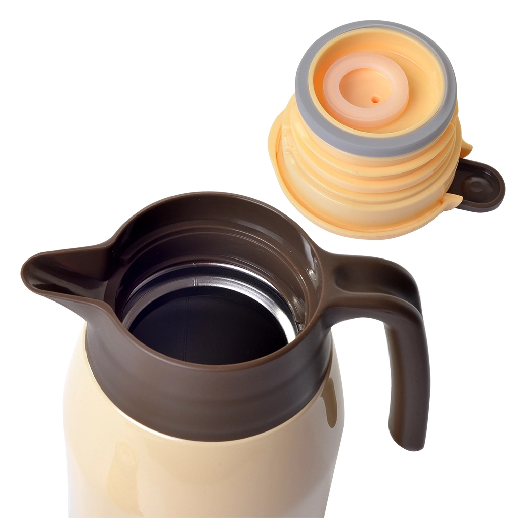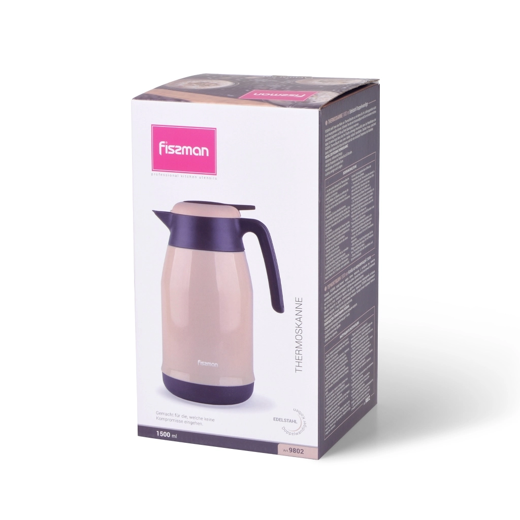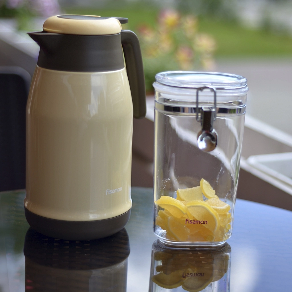 Термокувшин с желто-коричневым дизайном и объемом 1500 миллилитров, внутренние стенки изготовлены из качественной нержавеющей стали 304. Идеально подходит для чая, кофе и других напитков. https://fissman.ru/catalog/aksessuary-chay-kofe/termokuvshiny/termokuvshiny-1-5-l/termos-kuvshin-1-5-l-art-9802/
