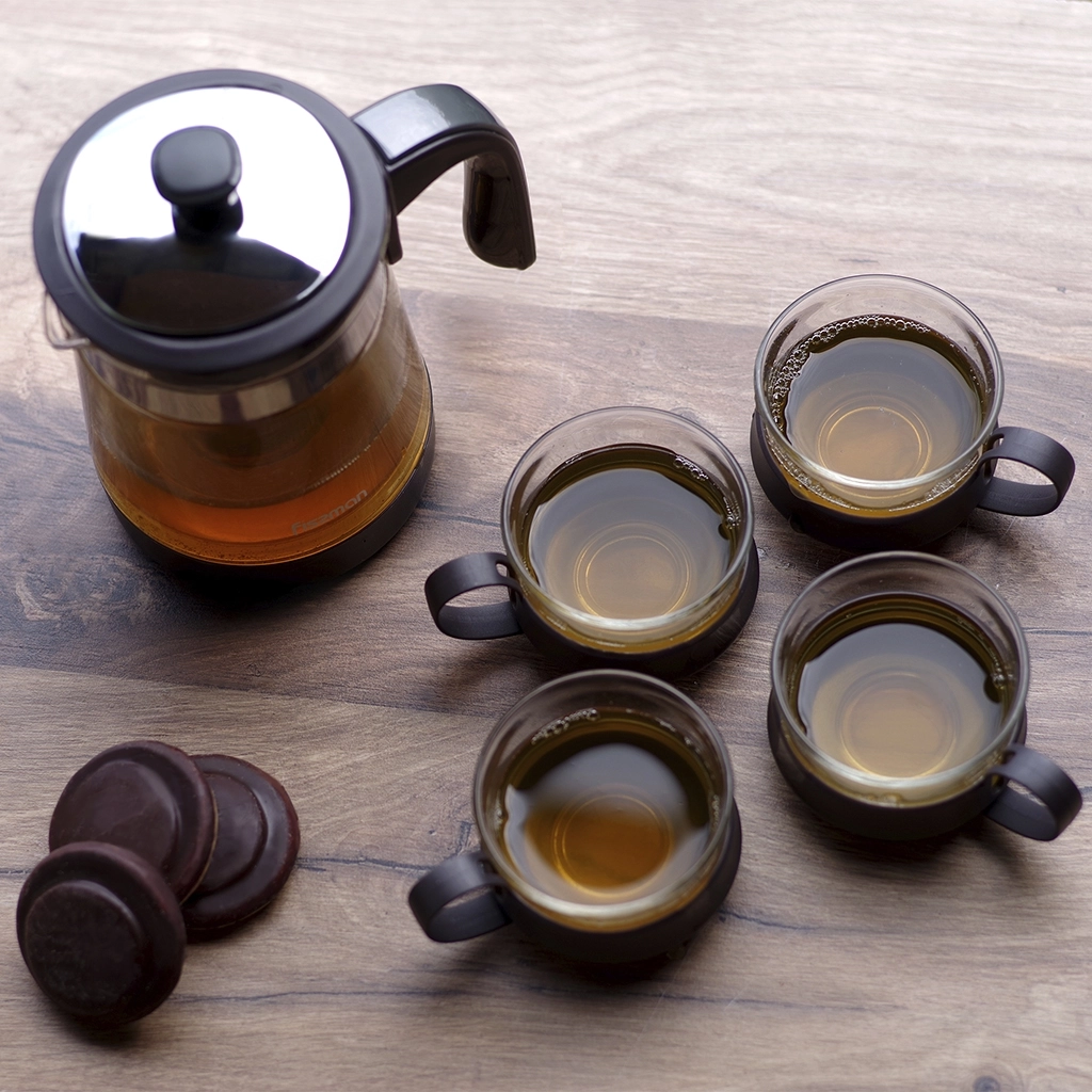 • Эргономика: продуманная форма чайника и чашек обеспечивает удобство использования.