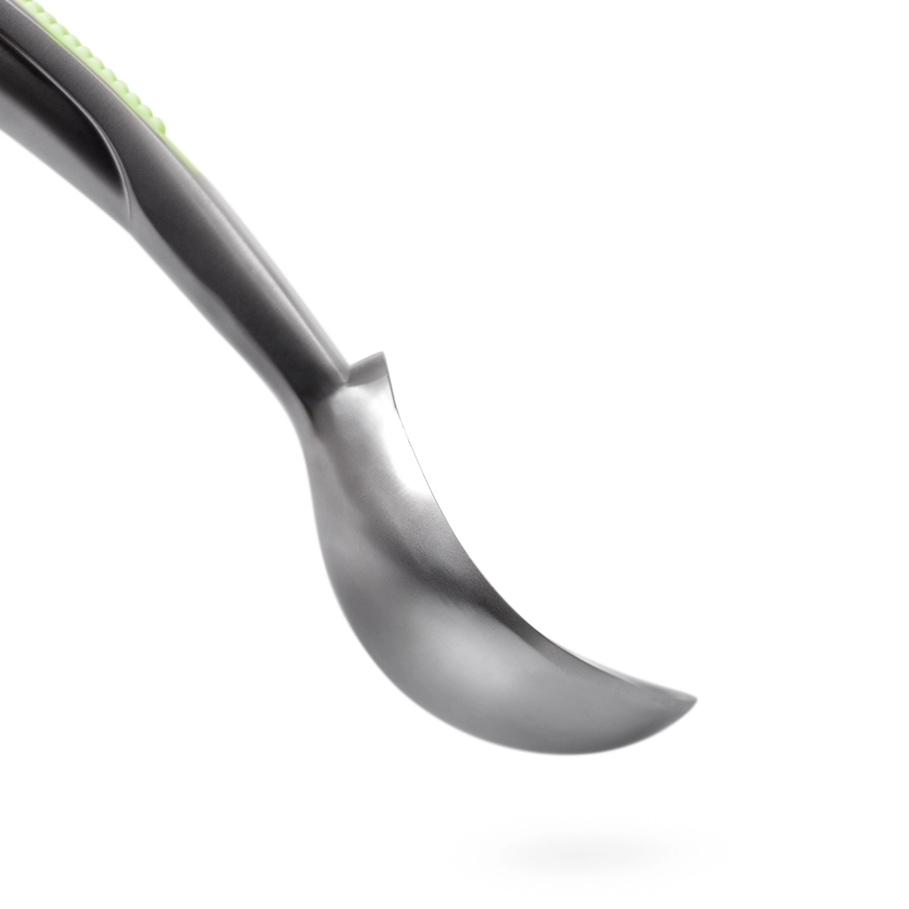 • Простота применения - не обязательно ждать, когда мороженое подтает, благодаря тому что ложка изготовлена из нержавеющей стали, ее можно поместить в стакан с горячей водой и затем сформировать шарик нужного Вам диаметра