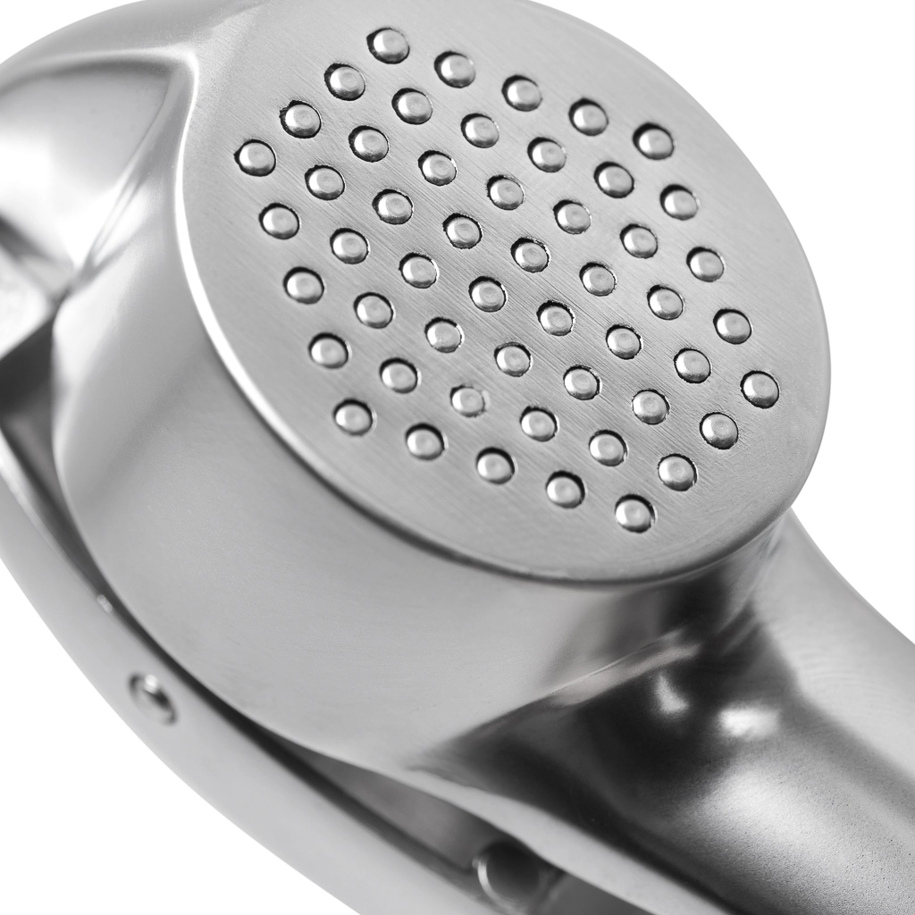 • Изделие устроено по принципу рычага – в чашу кладутся очищенные зубчики и придавливаются прессом. Тонкая кожица останется в чаше, а мякоть выйдет через отверстия. Вы получите нужную консистенцию и не запачкаете при этом руки, например, как при нарезке ножом