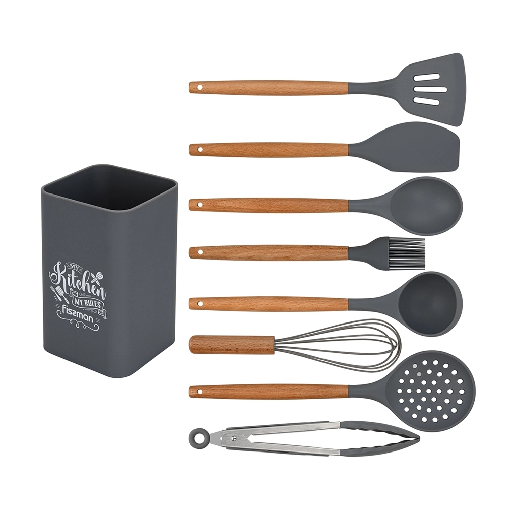 Хороший набор,сделано качественно и ничем не пахнет,ручки закреплены отлично. Очень красивое потемнее чем у остальных дерево. Маленькая комплектация приборов(комплектность на фото)брала для сравнения разные наборы.