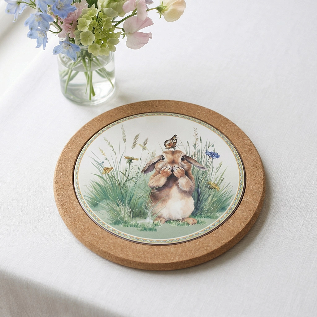 Рисунок с кроликами — это не просто декор. Это история, созданная дизайнерами Fissman, чтобы подарить вашему дому тепло, спокойствие и нотку ностальгии по беззаботному детству. https://fissman.ru/catalog/aksessuary/podstavki-pod-goryachee-prikhvatki/podstavka-pod-goryachee-iz-probkovogo-dereva-i-dolomita-20-sm-art-0162/
