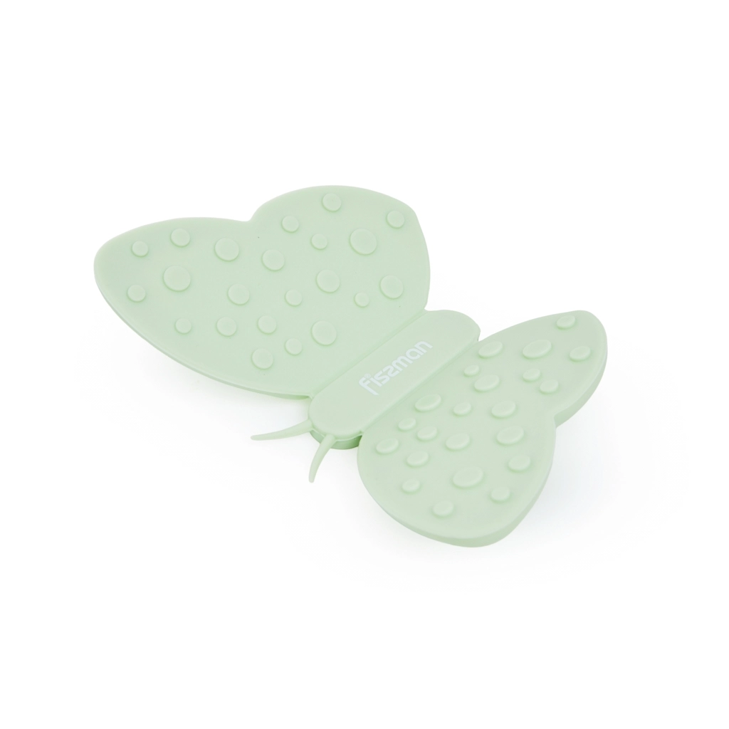 Яркая и стильная силиконовая прихватка в виде бабочки с магнитом от компании FISSMAN обладает неоспоримыми преимуществами: