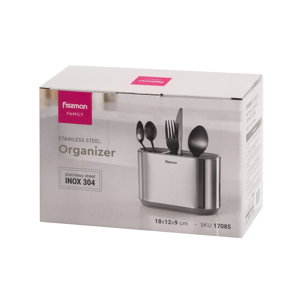 Органайзер для столовых приборов от FISSMAN - это не просто аксессуар для кухни, а настоящая находка для тех, кто ценит порядок и удобство. Он помогает поддерживать идеальный порядок среди столовых приборов: вилок, ложек, ножей и даже палочек для суши. Все предметы аккуратно разложены по своим местам.