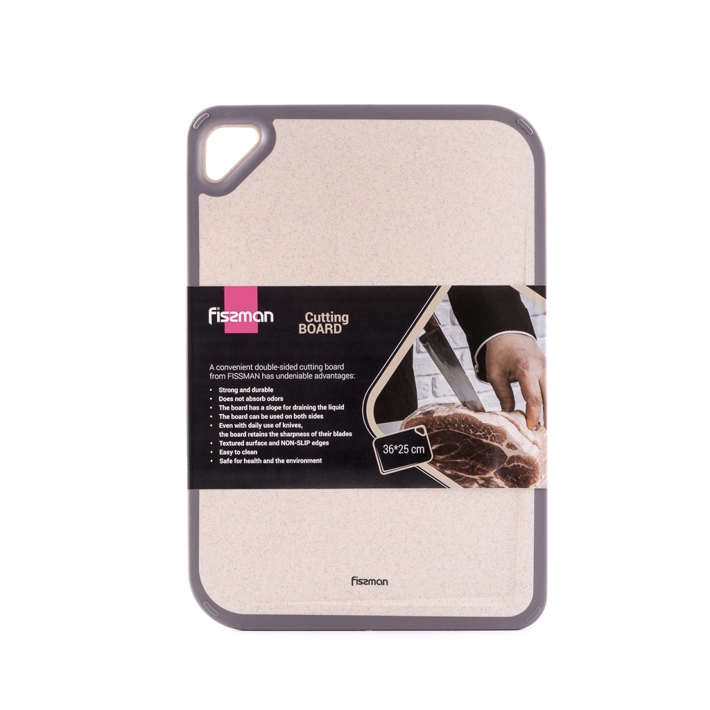 Доска сделана из прочного, безопасного для контакта с пищей пластика. Она устойчива к деформациям, не разбухает со временем от воды, не впитывает запахи, не тупит ножи, легко моется, проста и долговечна в использовании. https://fissman.ru/catalog/aksessuary/razdelochnye-doski/doska-razdelochnaya-plastikovaya-36-kh-25-x-0-84-sm-art-8062/