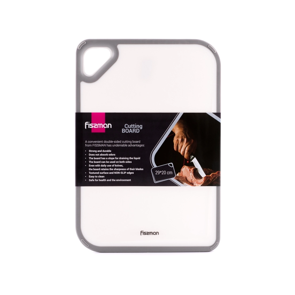 Доска сделана из прочного, безопасного для контакта с пищей пластика. Она устойчива к деформациям, не разбухает со временем от воды, не впитывает запахи, не тупит ножи, легко моется, проста и долговечна в использовании. https://fissman.ru/catalog/aksessuary/razdelochnye-doski/razdelochnaya-doska-s-zhelobom-29-kh-20-x-0-75-sm-art-8059/