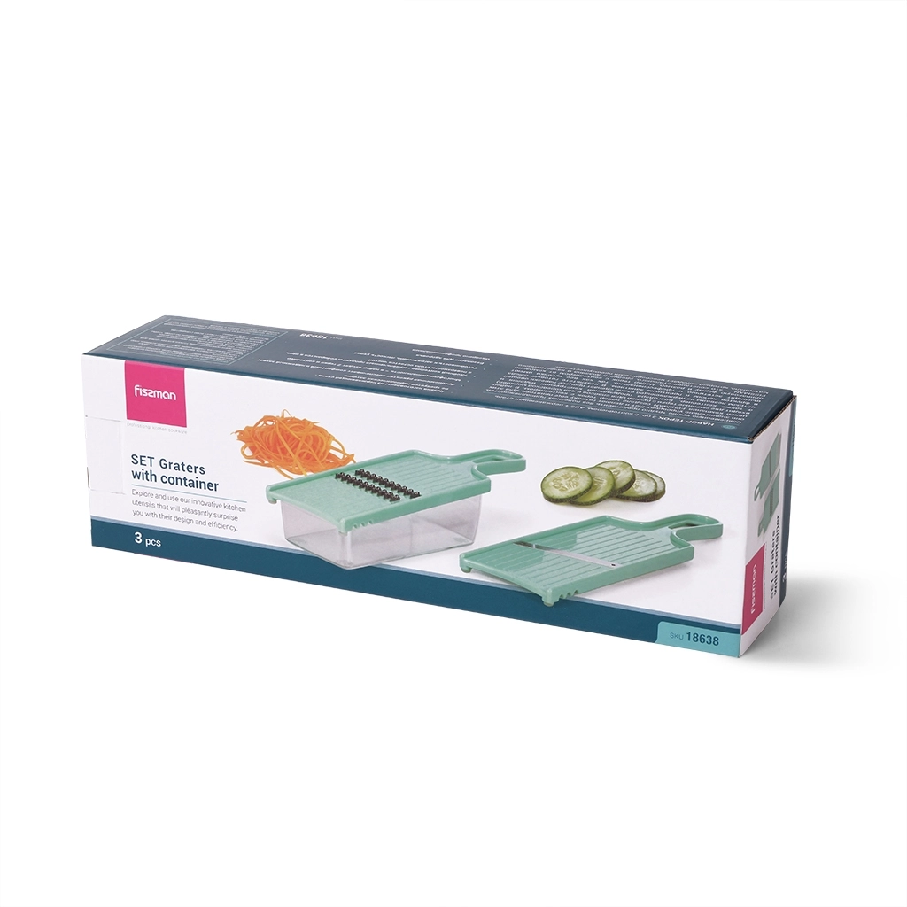 Современную кухню трудно представить без полезных принадлежностей, они значительно упрощают быт и делают готовку еще приятнее. Для этих целей компания FISSMAN создала набор терок с контейнером. В набор входит две сменные терки с ручкой (для слайсов и для корейской моркови) а также контейнер. Благодаря продуманной конструкции изделия и острым лезвиям из нержавеющей стали сделает процесс нарезки овощей и фруктов легким и приятным занятием. В результате готовые блюда выглядят эстетично и профессионально, так как все кусочки имеют одинаковую форму и размер. Набор терок с контейнером от компании FISSMAN — это сочетание стильного, удобного дизайна и качественного материала, который обладает неоспоримыми преимуществами: https://fissman.ru/catalog/aksessuary/terki-shinkovki-yaytserezki-choppery/nabor-iz-2-kh-terok-dlya-ovoshchey-iz-nerzhaveyushchey-stali-s-plastikovym-konteynerom/