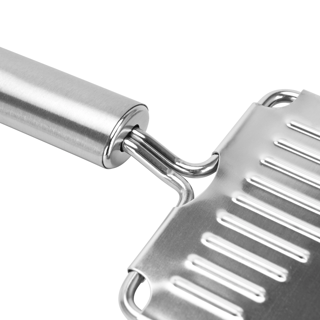 • Размер: 28,5 см — оптимальная длина для удобной работы. • Материал: нержавеющая сталь — прочная, устойчивая к коррозии, не впитывает запахи и легко моется. • Острые лезвия — быстро и ровно нарезают морковь тонкой соломкой, идеально подходящей для корейских блюд.ОТЛИЧИЯ: