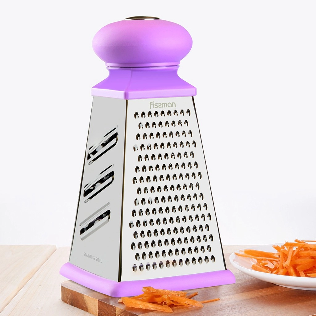 • Терка имеет 4 поверхности: для натирания пюре, крупной и мелкой соломки, ломтиков.