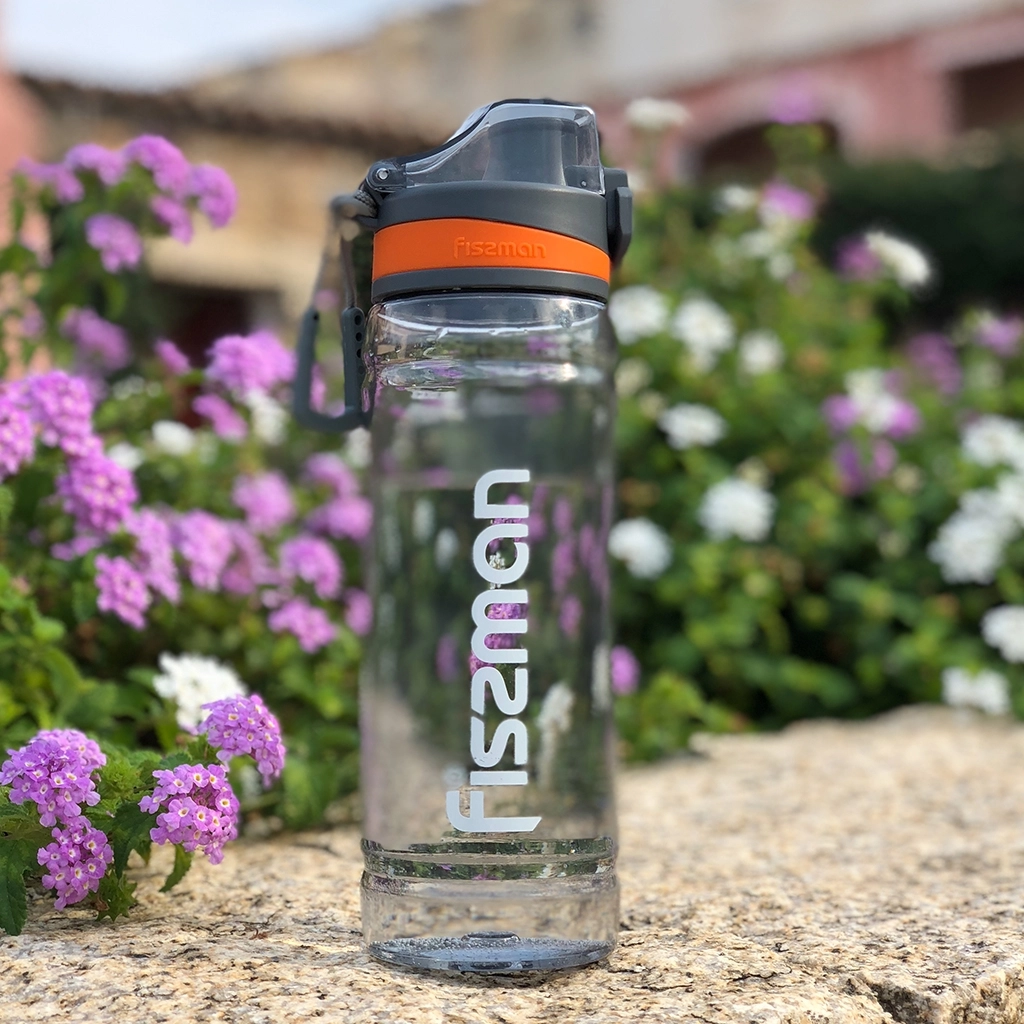 пластика. Он не содержит бисфенол А (BPA free), поэтому абсолютно безопасен для здоровья. Герметичная крышка не даст напиткам расплескаться даже при самых активных нагрузках. Бутылка имеет гладкий литой носик, благодаря которому вы можете утолить жажду на ходу. Широкое горлышко позволяет легко мыть и наполнять бутылку кубиками льда или кусочками фруктов. Проста в использовании: открывается одной рукой с помощью нажатия на кнопку. Бутылка предназначена только для холодных напитков. Не нагревайте бутылку и не используйте для горячих напитков!