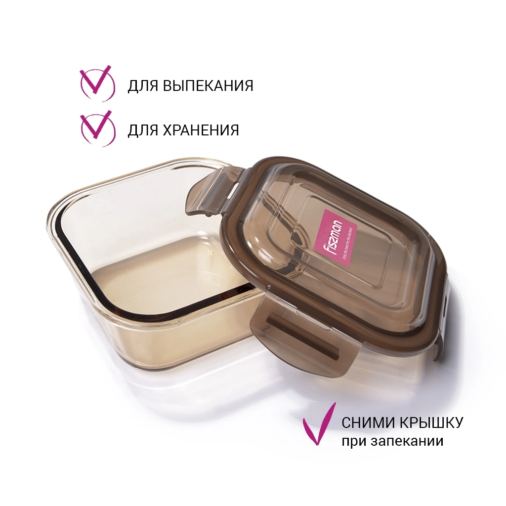 Форма для запекания: благодаря стенкам из жаропрочного стекла контейнер выдерживает нагрев до 400C в духовом шкафу