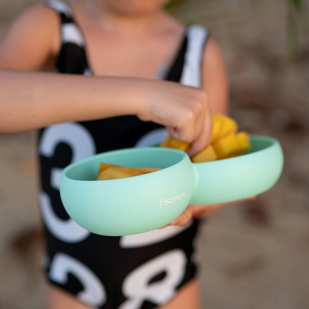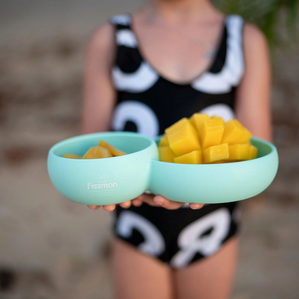 Двойная тарелка c разделителем 580мл и удобными фактурными ручками, изготовлена из силикона. Тарелка хорошо держит форму, не скользит по поверхности стола и способствует развитию мелкой моторики малыша. Благодаря наличию https://fissman.ru/catalog/detyam/detskaya-posuda-dlya-priema-pishchi/glubokaya-tarelka-c-razdelitelem-580ml/  нескольких секций, в тарелку можно положить разные блюда не смешивая их. Посуда из силикона не имеет запаха, устойчива к загрязнению. Силикон не впитывает запахи от еды, не токсичен. Термостойкий до 240 С. Можно мыть в посудомоечной машине.