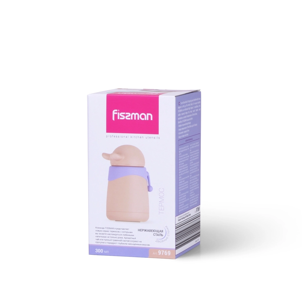 Термос бежевого цвета из высококачественной нержавеющей стали объёмом 300 мл идеально подходит для детей благодаря своему дружелюбному и яркому дизайну. https://fissman.ru/catalog/detyam/termokruzhki-termosy/termos-vakuumnyy-300-ml-art-9769/