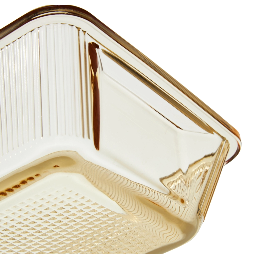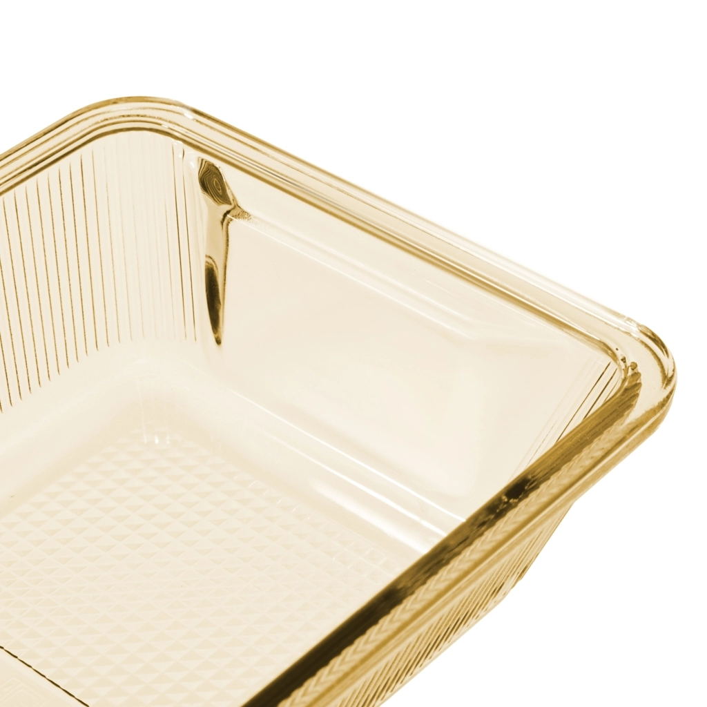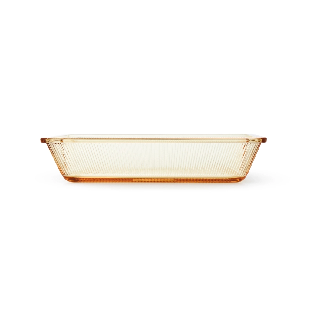 Это не просто прозрачная посуда - это тёплый, насыщенный янтарь, наполняющий кухню уютом и изысканностью. Благодаря текстурированным стенкам и эргономичным ручкам форма выглядит как дизайнерский акцент - она прекрасна даже без блюда, украшая собой любой стол и подчеркивая ваш вкус!
