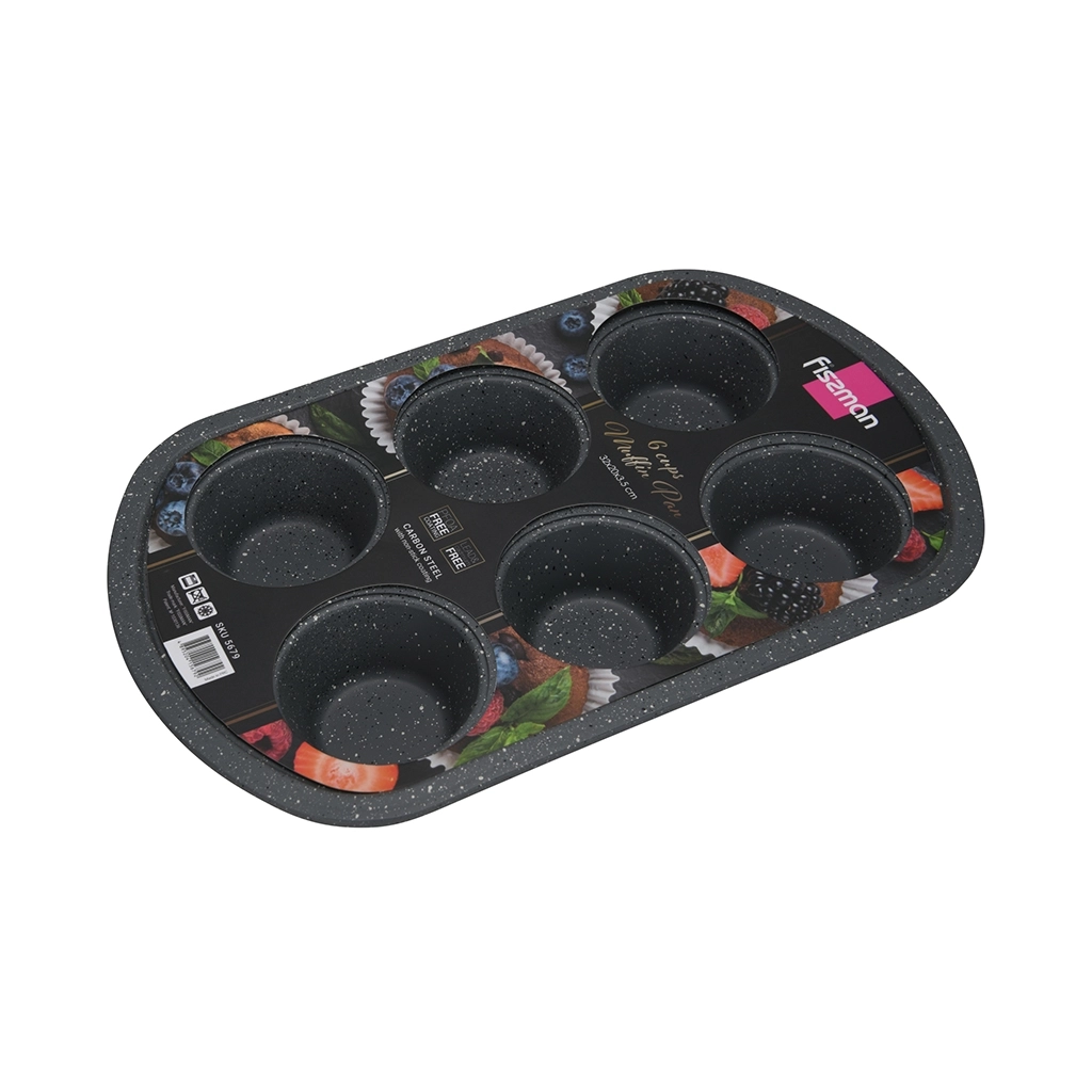 Форма для выпечки 6 кексов от компании FISSMAN изготовлена из углеродистой стали с антипригарным покрытием Innotek Xynflon.
