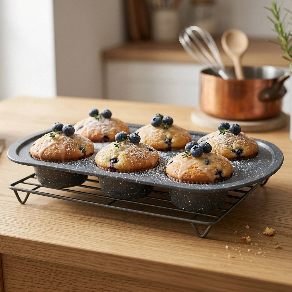 • Форма для выпечки кексов изготовлена из углеродистой стали, которая отличается повышенной прочностью и высокой твердостью