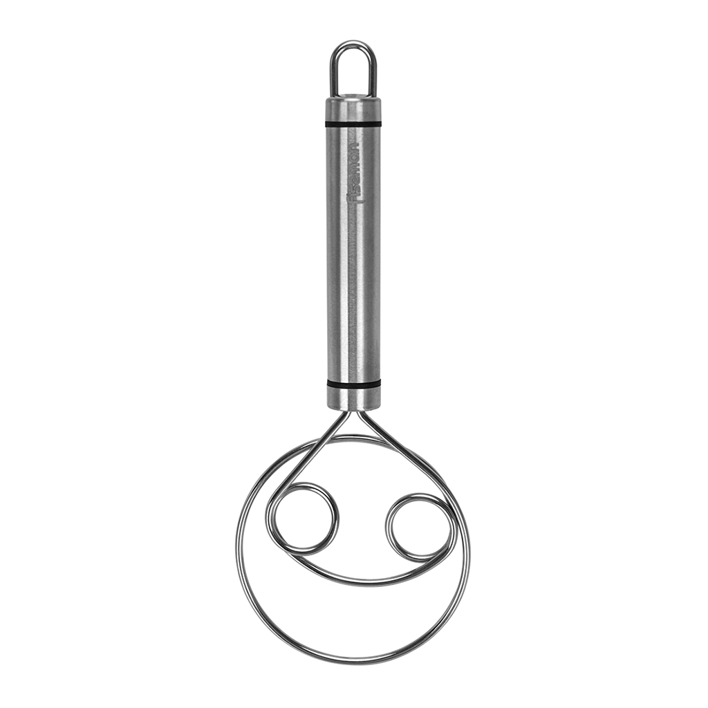Датский венчик -легко и быстро замешивает тесто. От воздушного - для блинов, оладий, кексов, а также фруктовой начинки до тяжелого и липкого теста на ржаной хлеб. Идея его создания заключалась в том, чтобы оптимизировать процесс замешивания плотных по консистенции продуктов. Традиционные способы замеса теста, фарша или других вязких продуктов предполагали использования рук или ручного миксера, что отнимало достаточно много времени, усилий и доставляло сложности. С датским венчиком не требуются традиционные способы. Рабочая часть состоит из толстой проволоки, выполненной из нержавеющей стали марки INOX 304(18/10). Цилиндрические кольца расположены так, что любая густая смесь не налипает и не задерживается, как это часто бывает при использовании классического ручного венчика. Крепкое соединение и надежная стальная ручка не прогибается под тяжестью замеса теста, фарша или творожной массы. Датский венчик делает замес равномерным, гомогенизируя тесто, без лишнего воздуха и комочков. Хлеб получается с идеальной корочкой и мякишем. Так же он с легкостью справиться с замесом дополнительных ингредиентов в тесто, не нарушая их структуру. Можете быть уверенными ваши ягоды в тесте для маффинов останутся невредимыми. Он будет незаменимым помощником и при замешивании каш, тушеных блюд, густых соусов и более жидкого теста для оладий или блинчик
