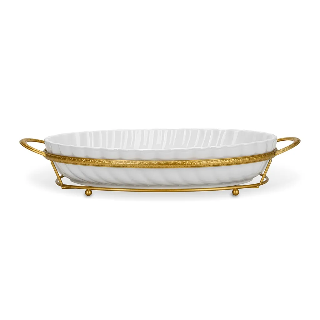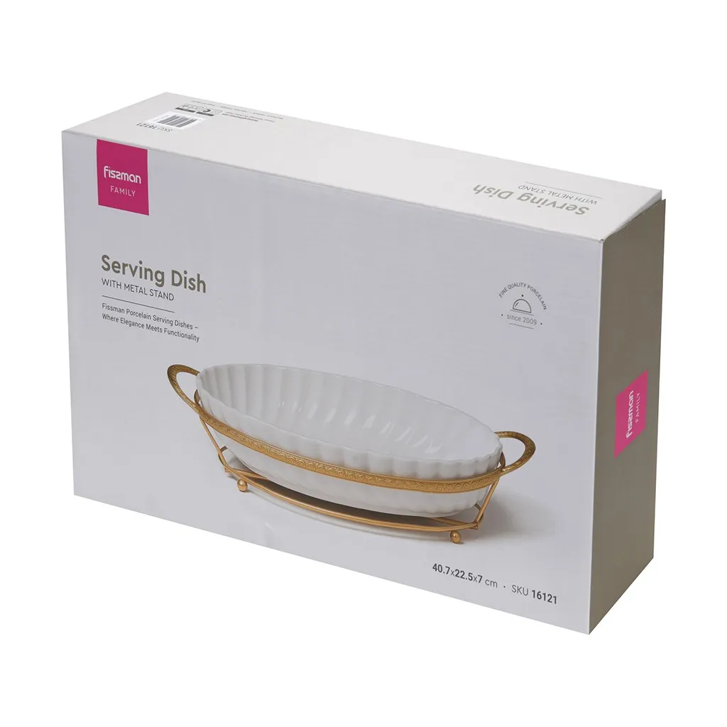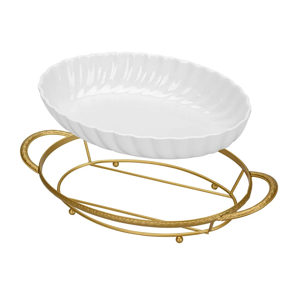 Фарфоровое блюдо для сервировки 33 см на подставке