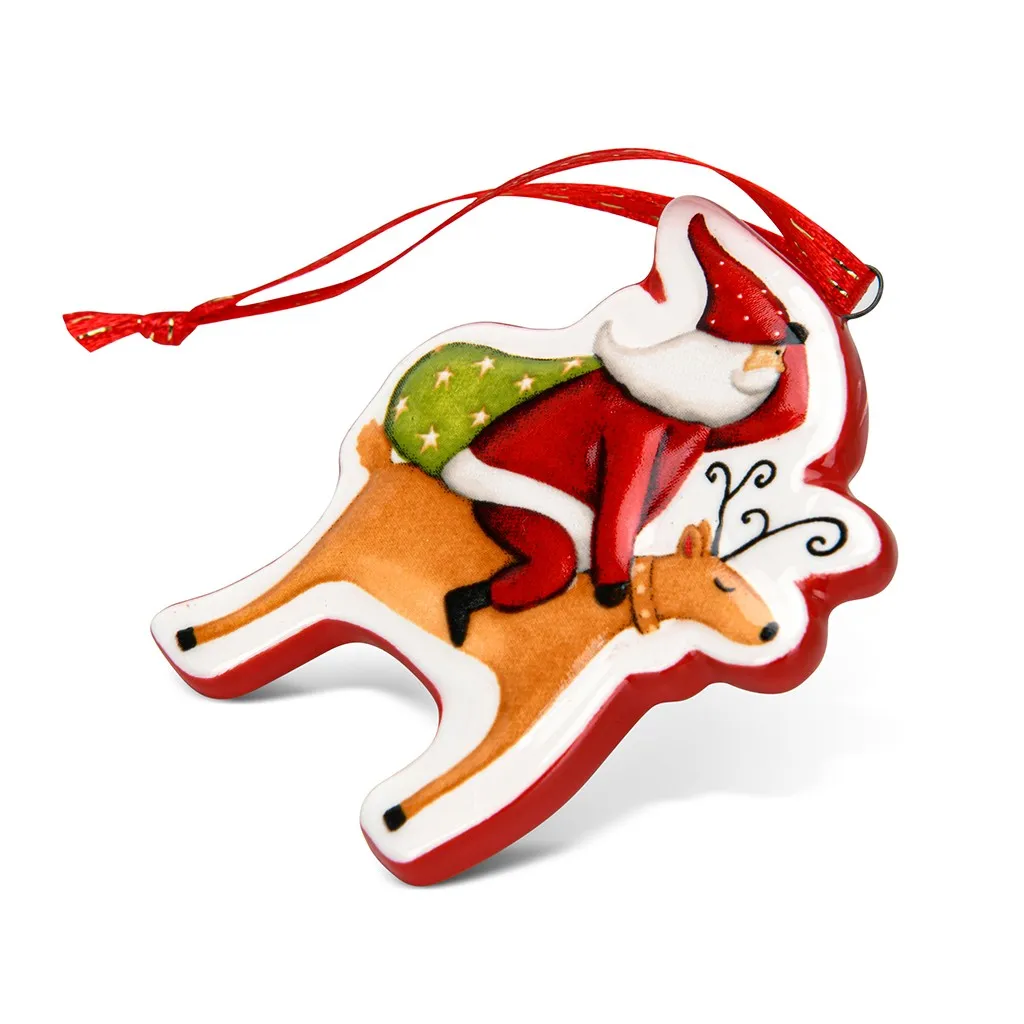 Елочная игрушка из доломита 6,5 х 5 см "Санта на олене" арт. 0400