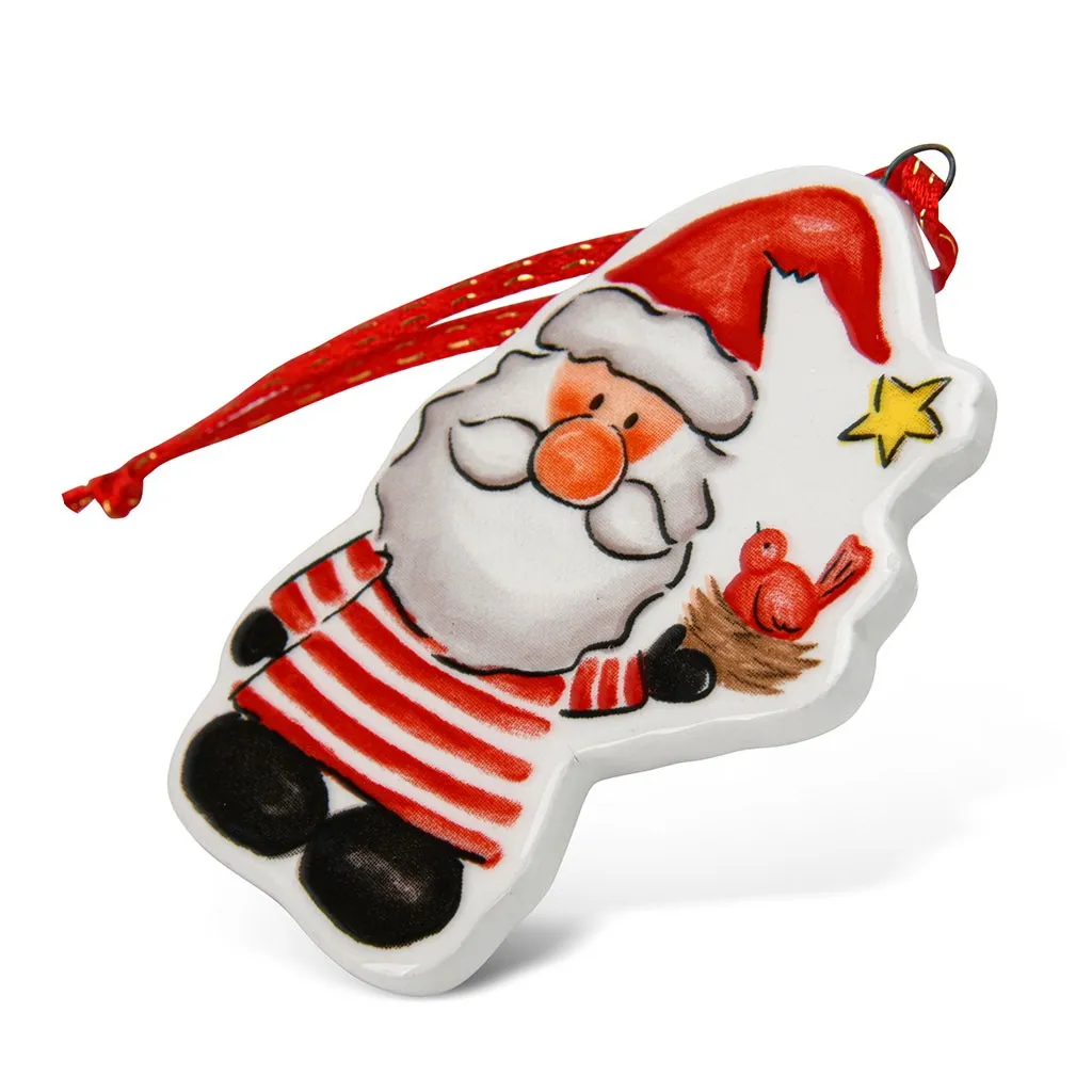 Елочная игрушка из доломита 7 х 5 см "Санта с птичкой" арт. 0404