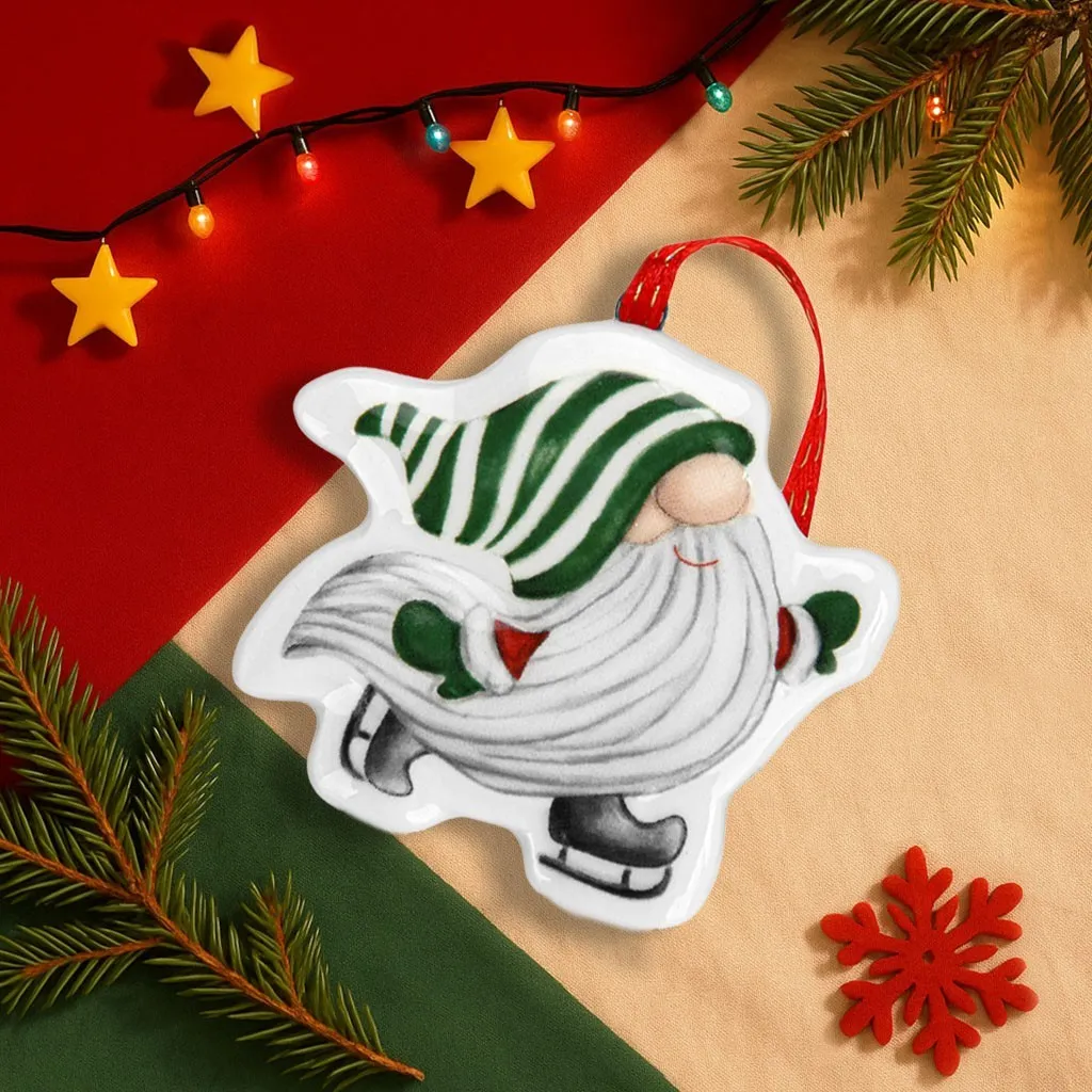 Новогодняя ёлочная игрушка «Гном на коньках» - это гном в зелёно-белой шапке размером 7 x 7 см. Он символизирует зимний уют и создаёт атмосферу праздника. Эта игрушка не просто украшение, она может стать вашим помощником в создании праздничного настроения, которое начинается не с ёлки, а с вашего настроения.