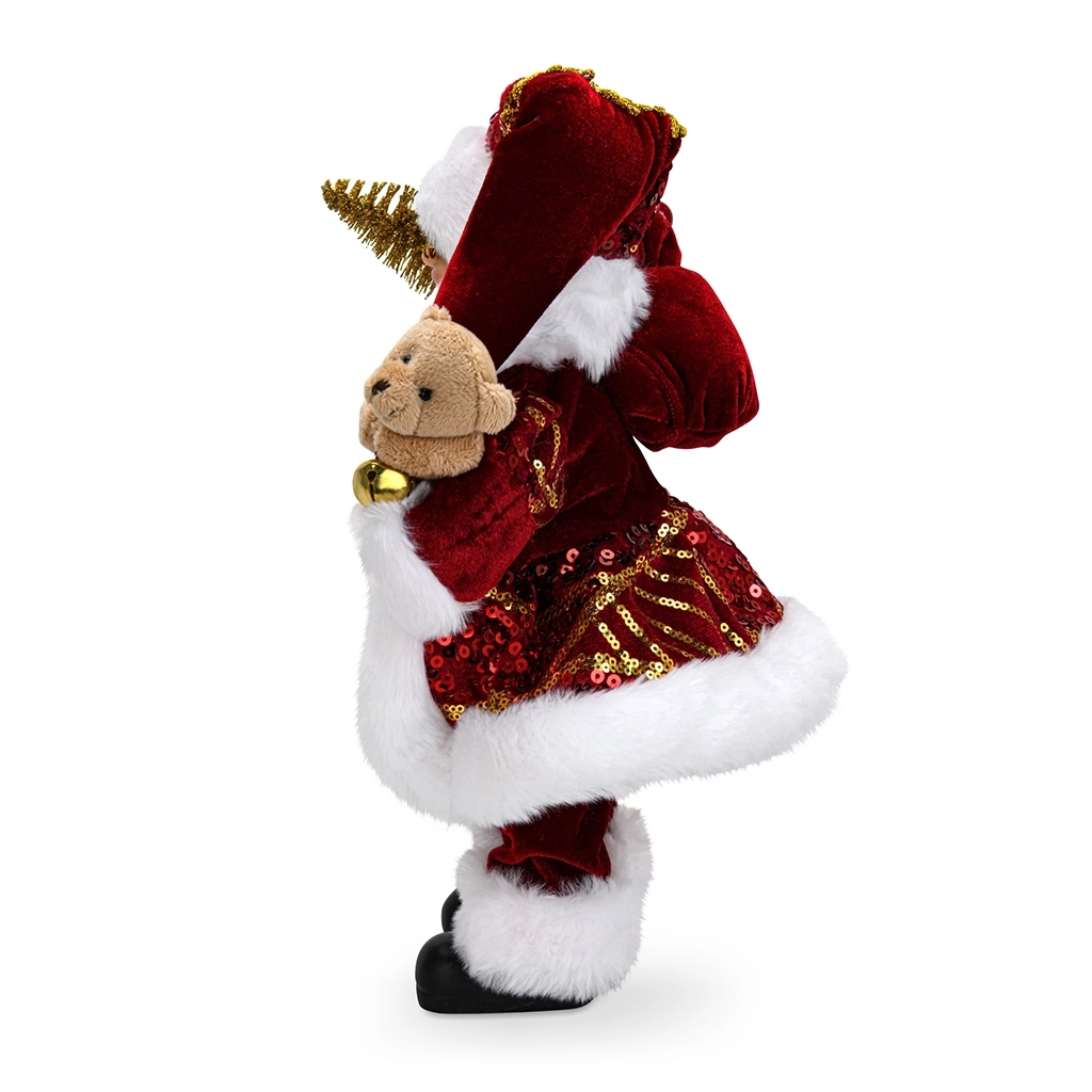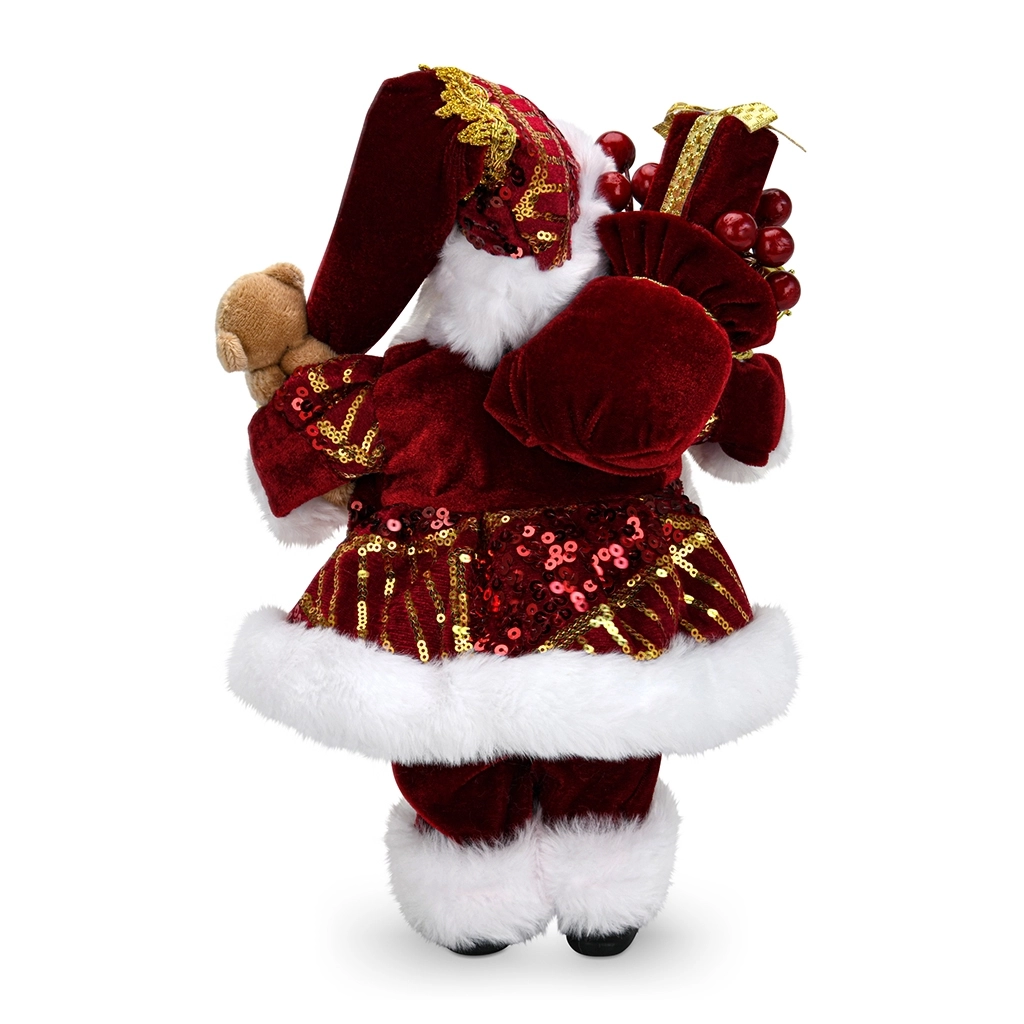 Фигурка высотой 30 см идеально подходит для размещения на каминной полке, серванте, комоде или рядом с ёлкой. Её объёмная форма и детализированный костюм привлекают внимание и становятся естественным акцентом праздничного интерьера.