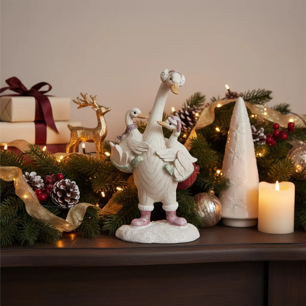 Статуэтка "Гусь с гусятами" 18 см (полирезин)