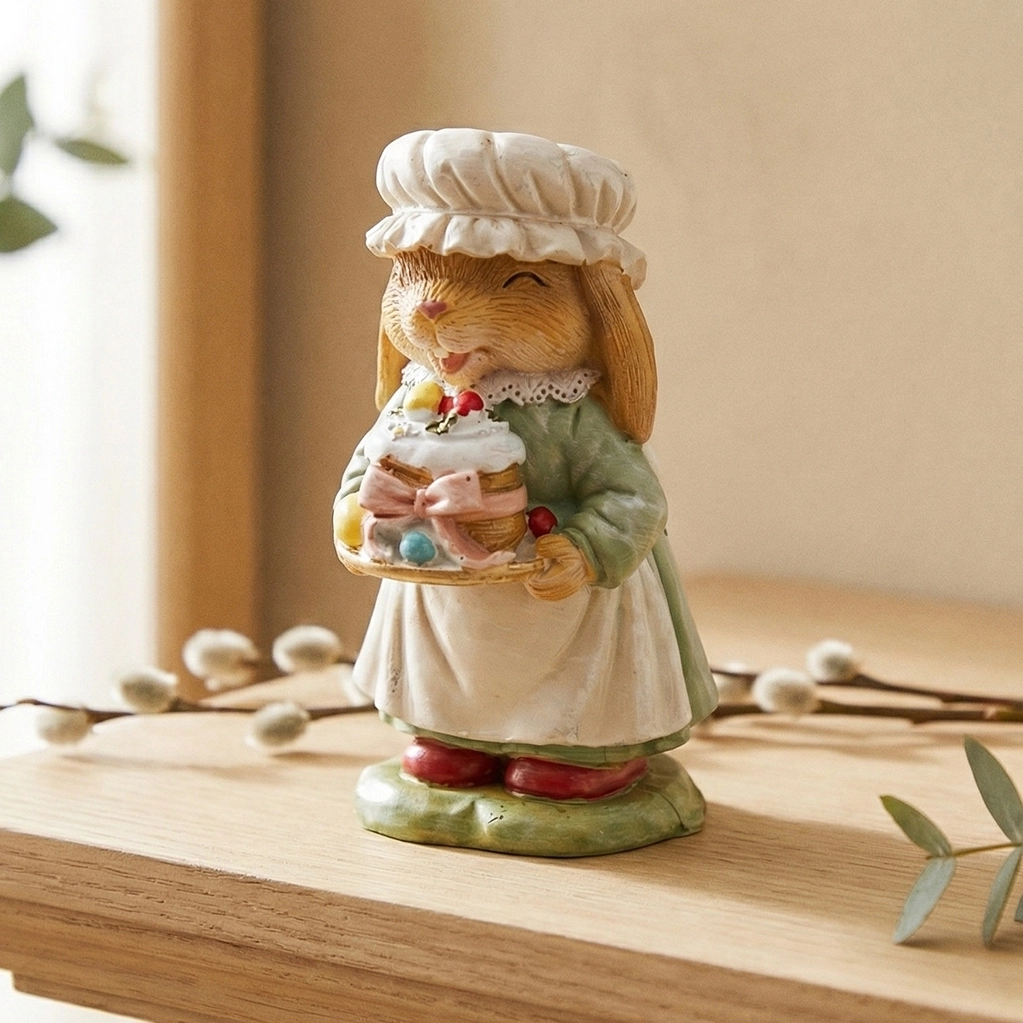 Статуэтка "Кролик с пасхальным куличом" 11 см (полирезин)