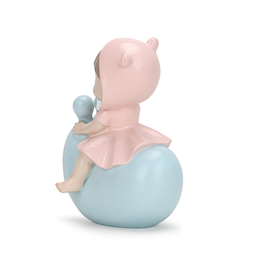 и забавный образ, символизирующий детскую непосредственность и любознательность. Маленький карапуз уселся верхом на большую игрушечную улитку, с интересом изучая окружающий мир. Эта статуэтка может стать прекрасным украшением интерьера, напоминающим о радости и счастье детства.