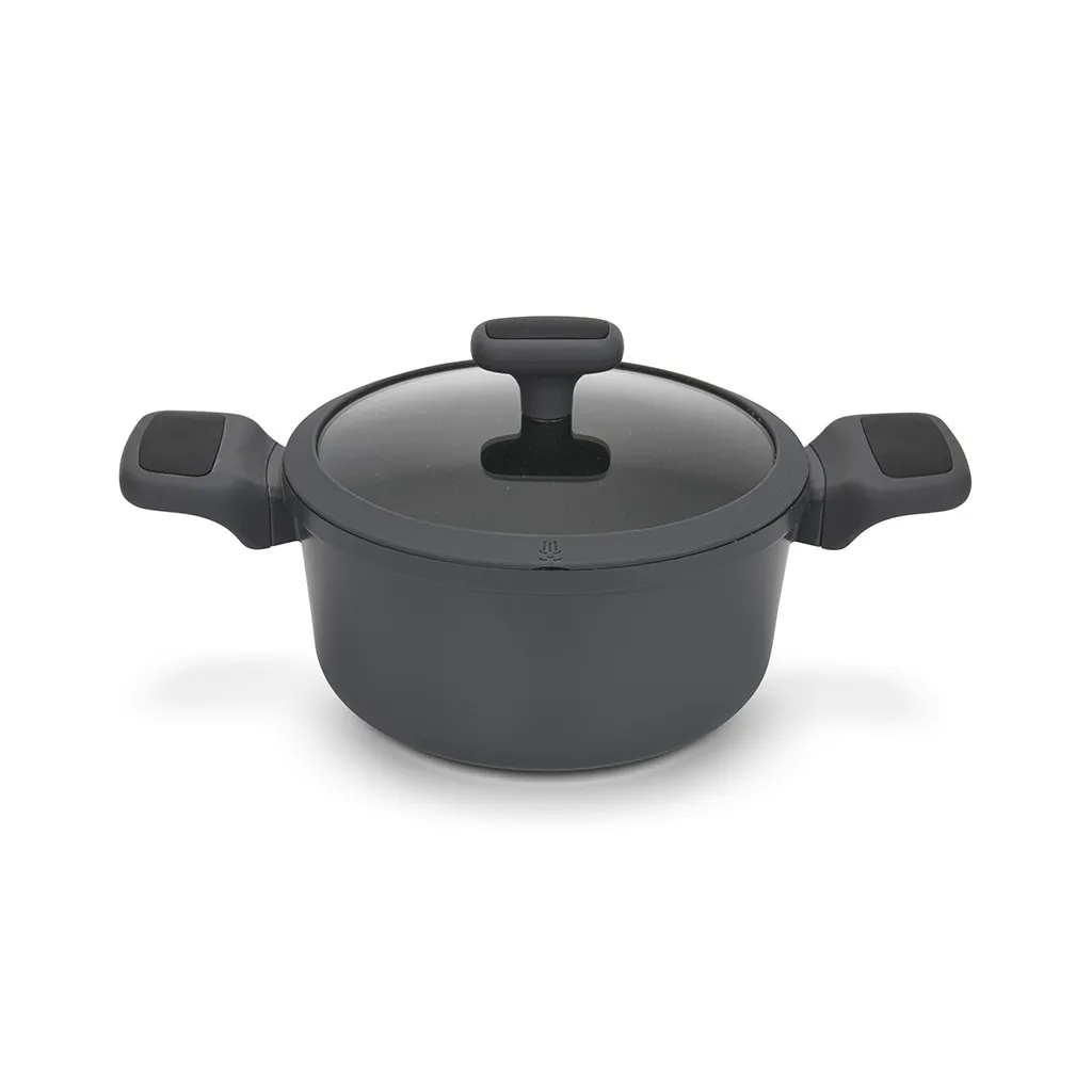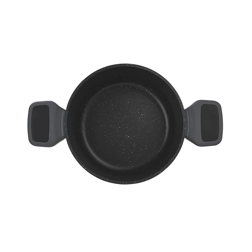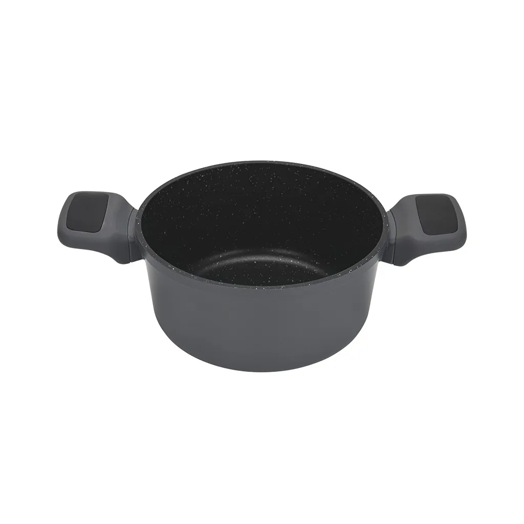 Антипригарная кастрюля TITANIUM PRO 20 см – удобный вариант для повседневной готовки. Объём 2,7 л подходит для супов, рагу, гарниров или соусов. Литой алюминий равномерно распределяет тепло, а прочное покрытие с добавлением титана позволяет готовить с минимальным количеством масла и без риска пригорания.