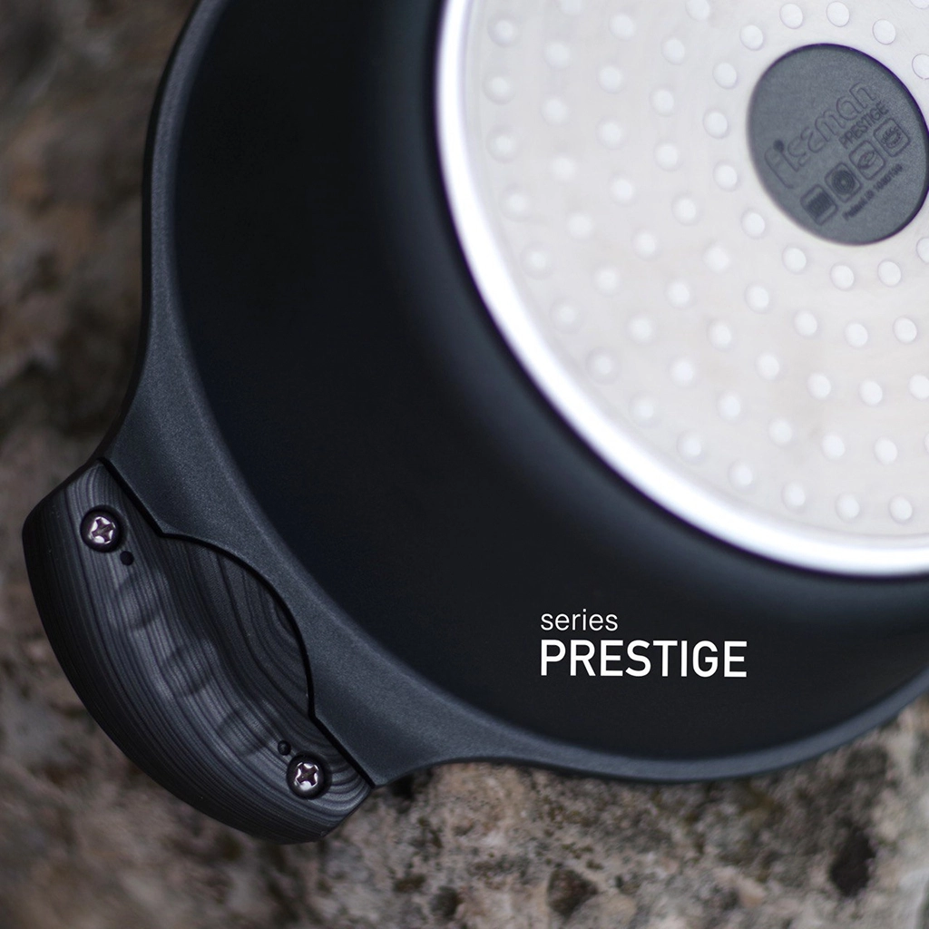 • Оригинальный дизайн делает изделия PRESTIGE украшением кухни: благородный вид внутреннего покрытия, стильное оформление в глубоком графитовом оттенке снаружи.