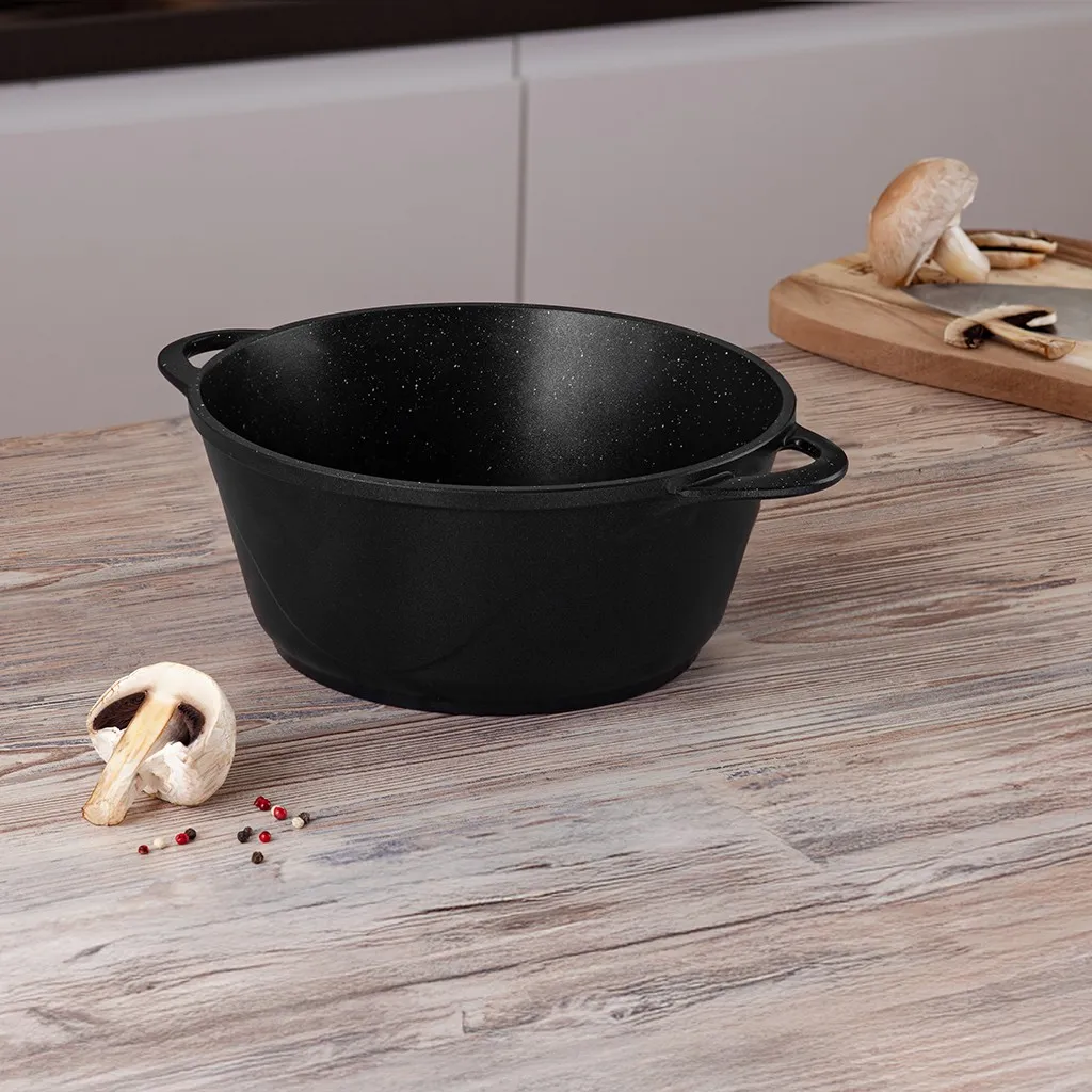 Кастрюля Cook Pro — идеальное решение для вашей кухни! Она сделана из литого алюминия, который обеспечивает равномерное распределение тепла и быстрое приготовление пищи. Высококачественное антипригарное покрытие с высокой износостойкостью (20 000 циклов) гарантирует долговечность и надёжность.
