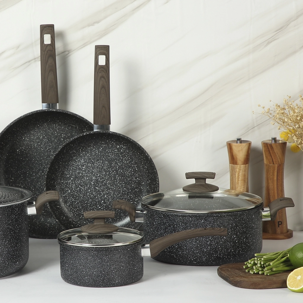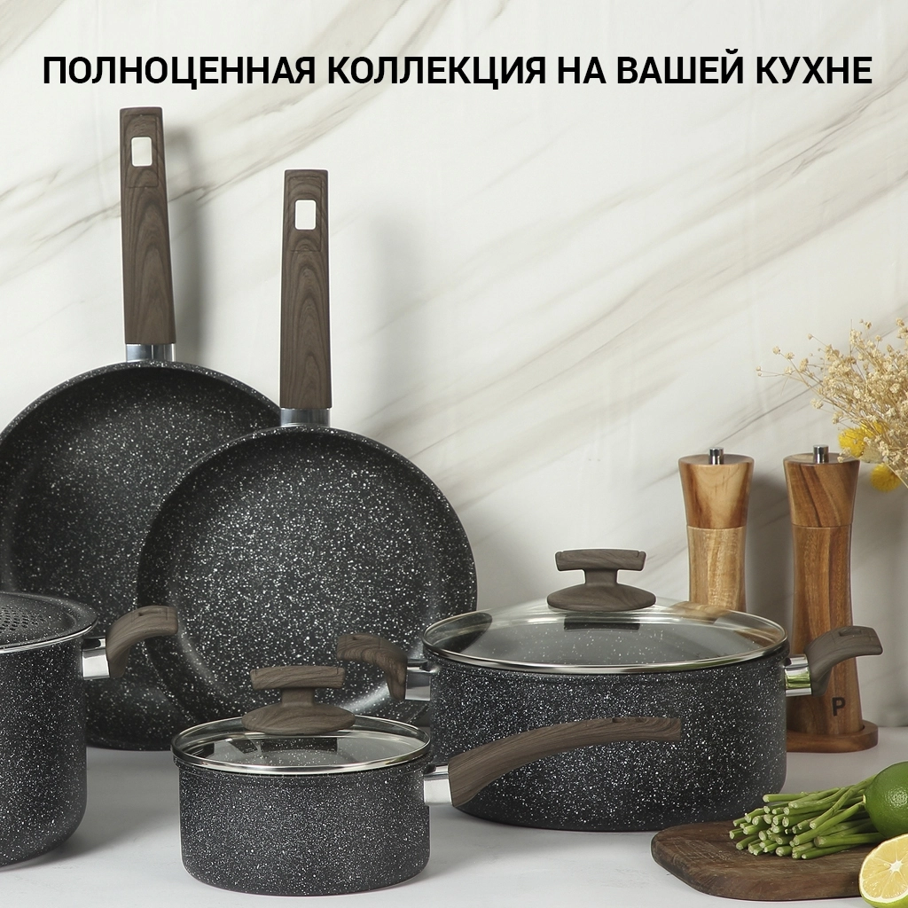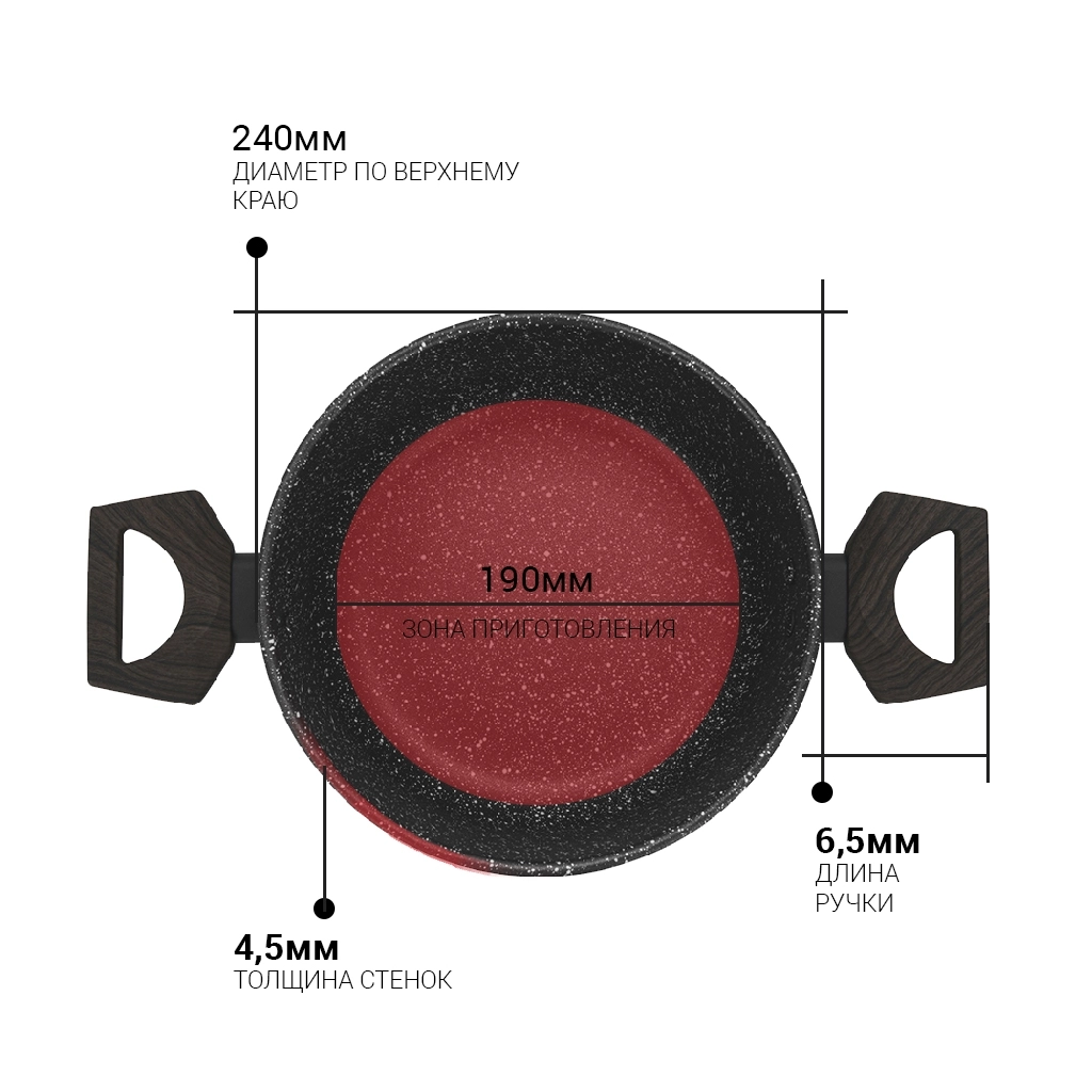 • Бакелитовые ручки с soft-touch покрытием “под дерево” удобны в использовании, приятны на ощупь, не скользят, не нагреваются.
