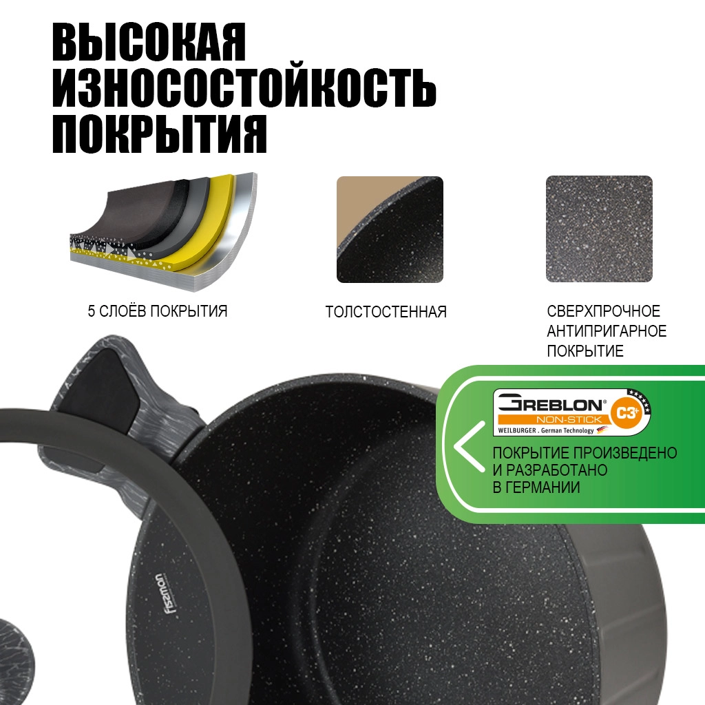 Инновационное многослойное антипригарное покрытие Greblon С3 обладает исключительными свойствами: оно устойчиво к истиранию и ржавчине за счет керамических частиц, входящих в его состав. https://fissman.ru/catalog/kastryuli/kastryuli-alyuminievye/alyuminievye-kastryuli-4-l/kastryulya-induktsionnaya-24-sm-4-2-l-s-antiprigarnym-pokrytiem-stella/