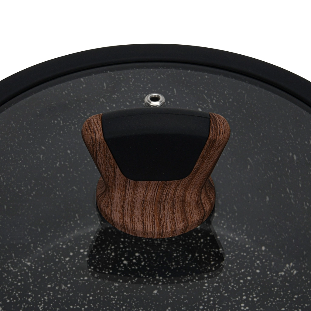 • Стеклянная крышка позволяет наблюдать за готовностью пищи, не открывая посуду, тем самым, исключая попадания брызг на кожу и одежду.