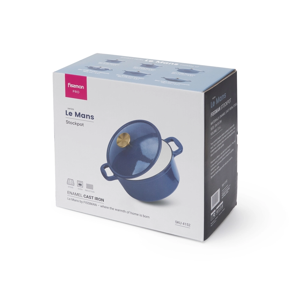 Чугунная кастрюля FISSMAN 2,6 л — идеальный формат для повседневной готовки и уютных семейных ужинов. Она станет вашим основным помощником для приготовления первых и вторых блюд на нескольких человек.