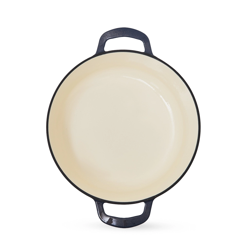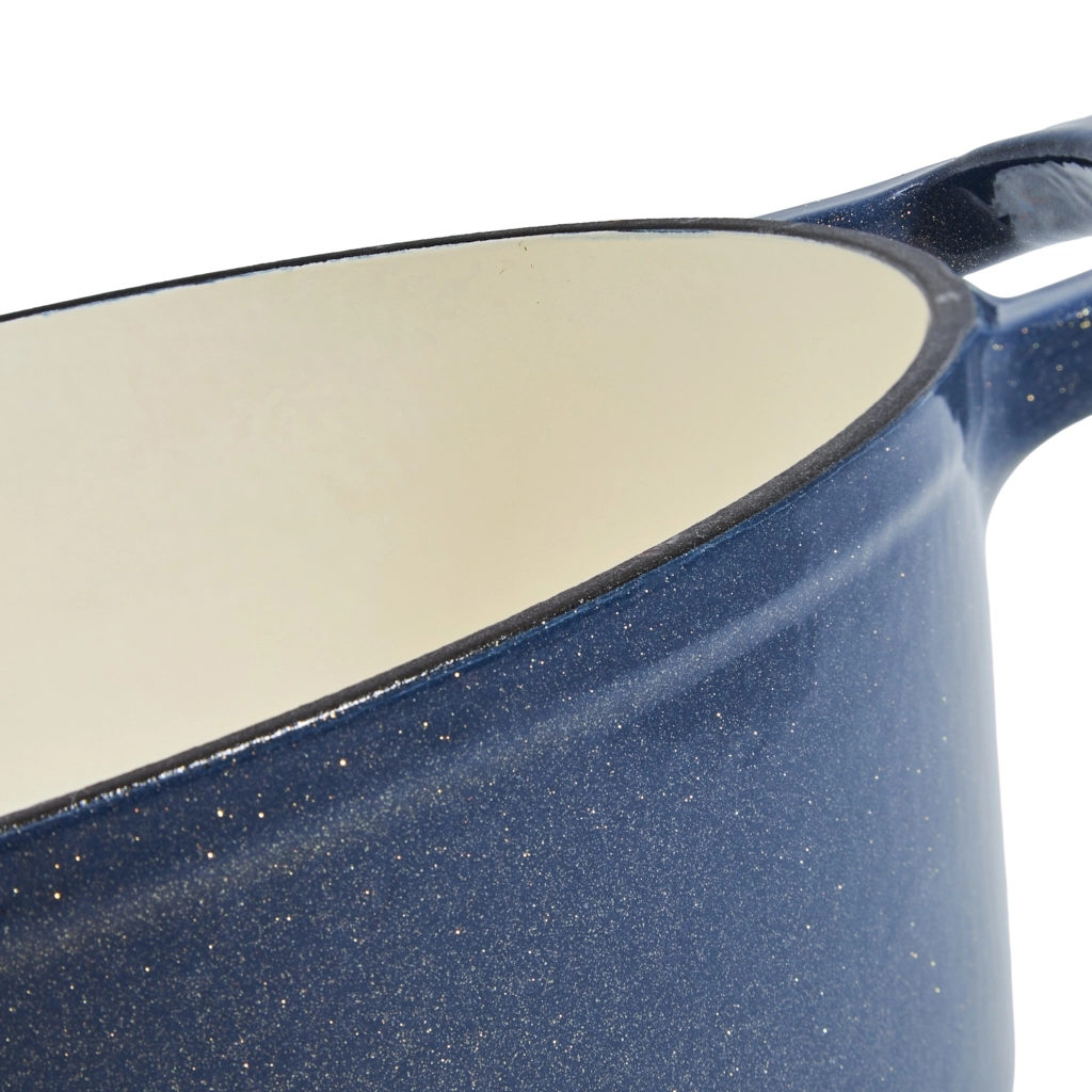 - Прочное фарфоровое покрытие: кастрюля изготовлена из толстого чугуна с гладкой эмалированной отделкой, что делает её устойчивой к растрескиванию, сколам и пригоранию.