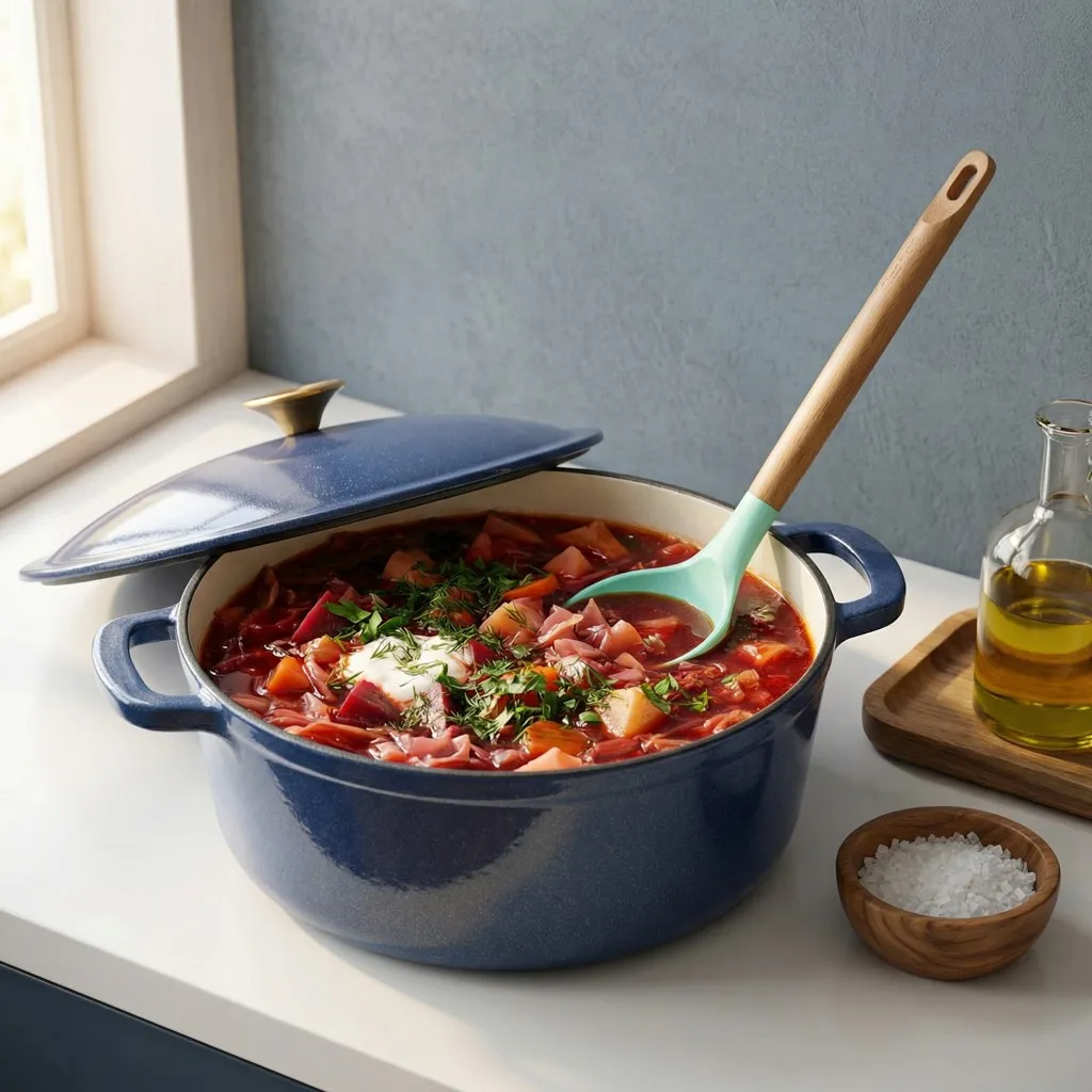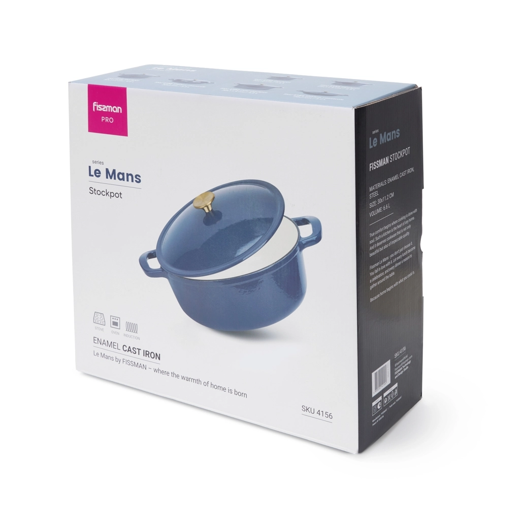 Чугунная кастрюля FISSMAN 6,62 л с фарфоровой эмалью — профессиональный формат для масштабной готовки, праздничных и больших семейных ужинов.