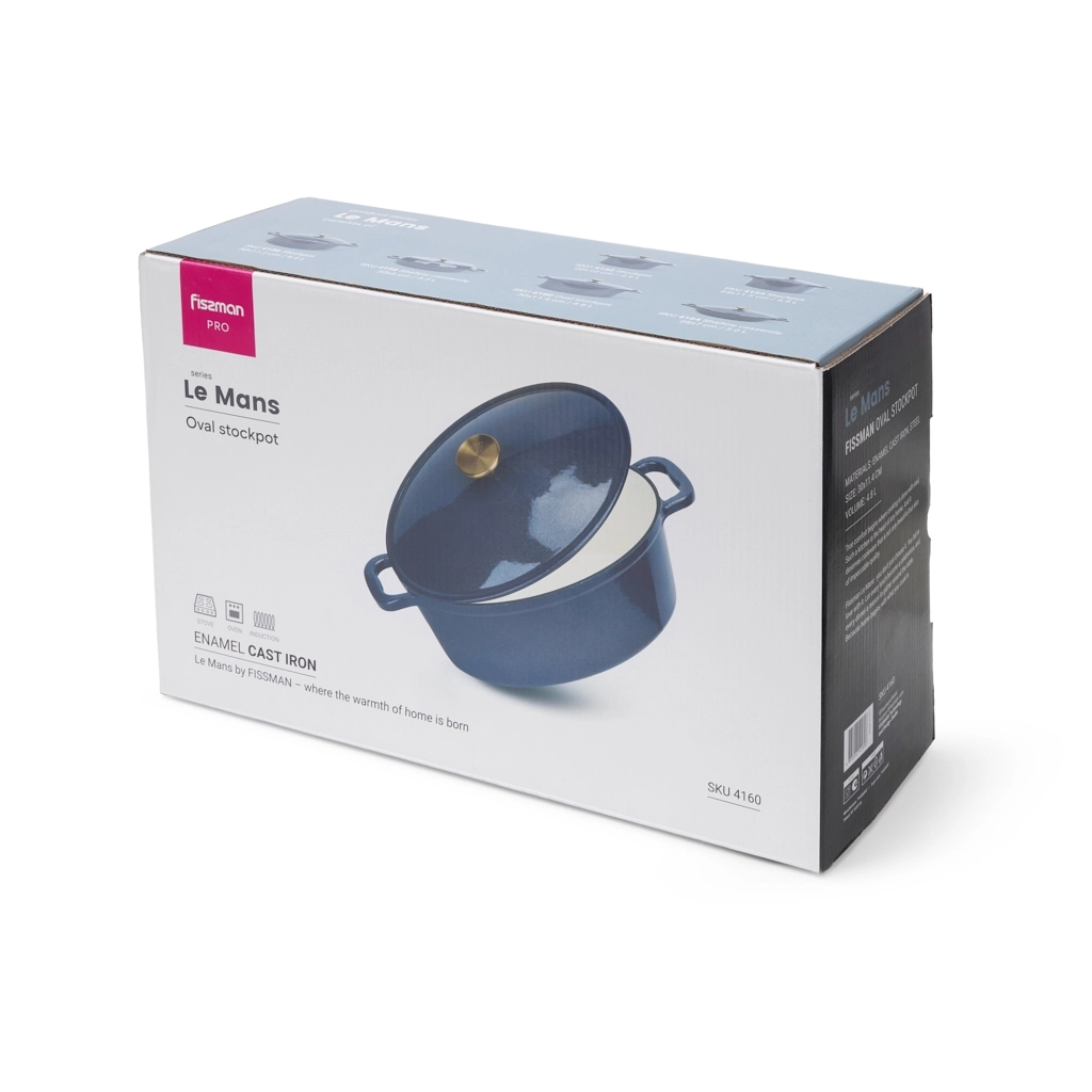 Чугунная утятница FISSMAN — ваша многофункциональная помощница для сытных семейных обедов и приёма гостей. Благодаря большому объёму (4,8 л) в ней удобно готовить с запасом: томить, запекать и тушить.