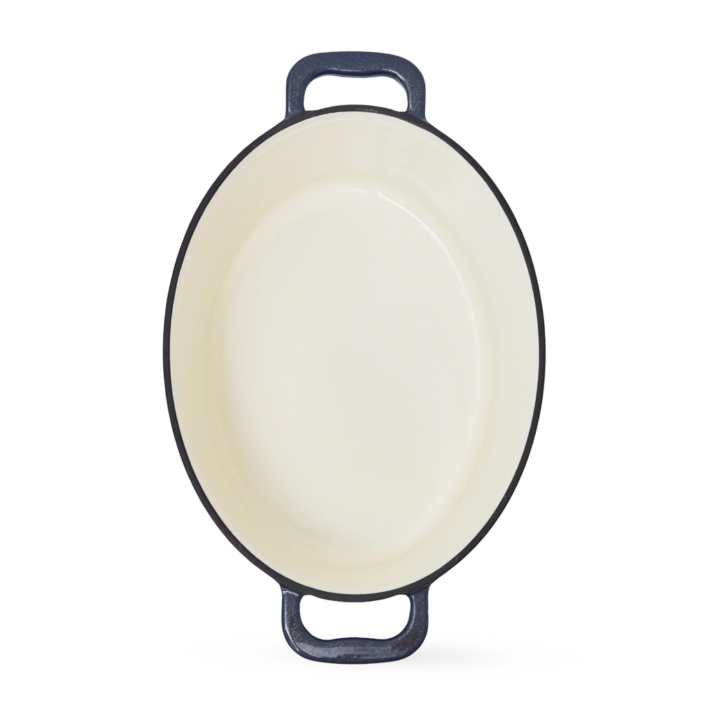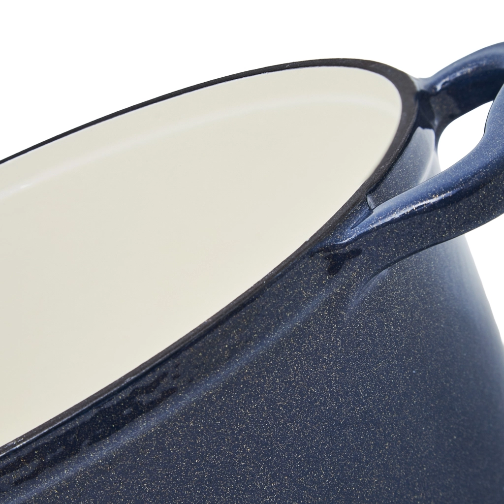 - Прочное фарфоровое покрытие: утятница изготовлена из толстого чугуна с гладкой эмалированной отделкой, что делает её устойчивой к растрескиванию, сколам и пригоранию.